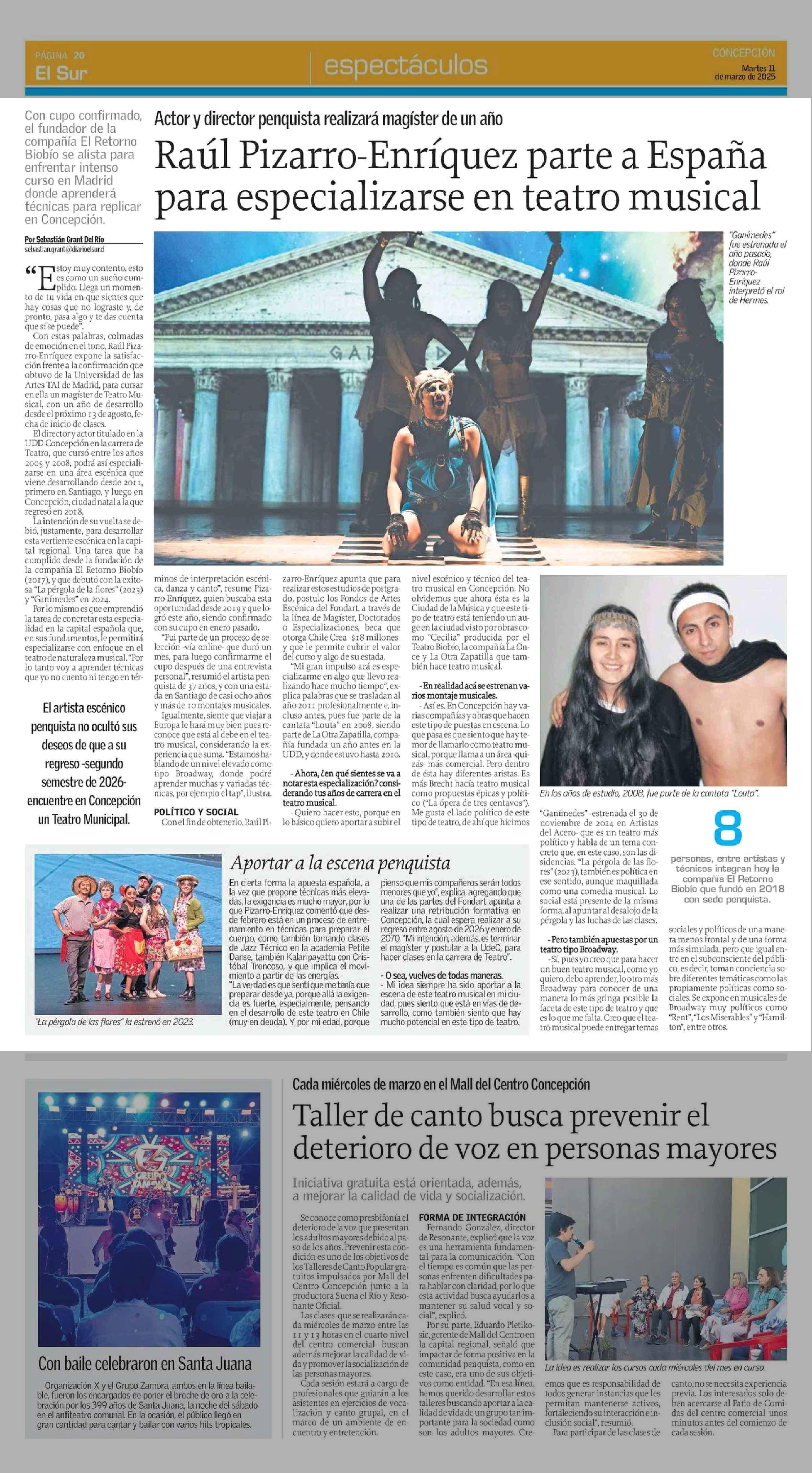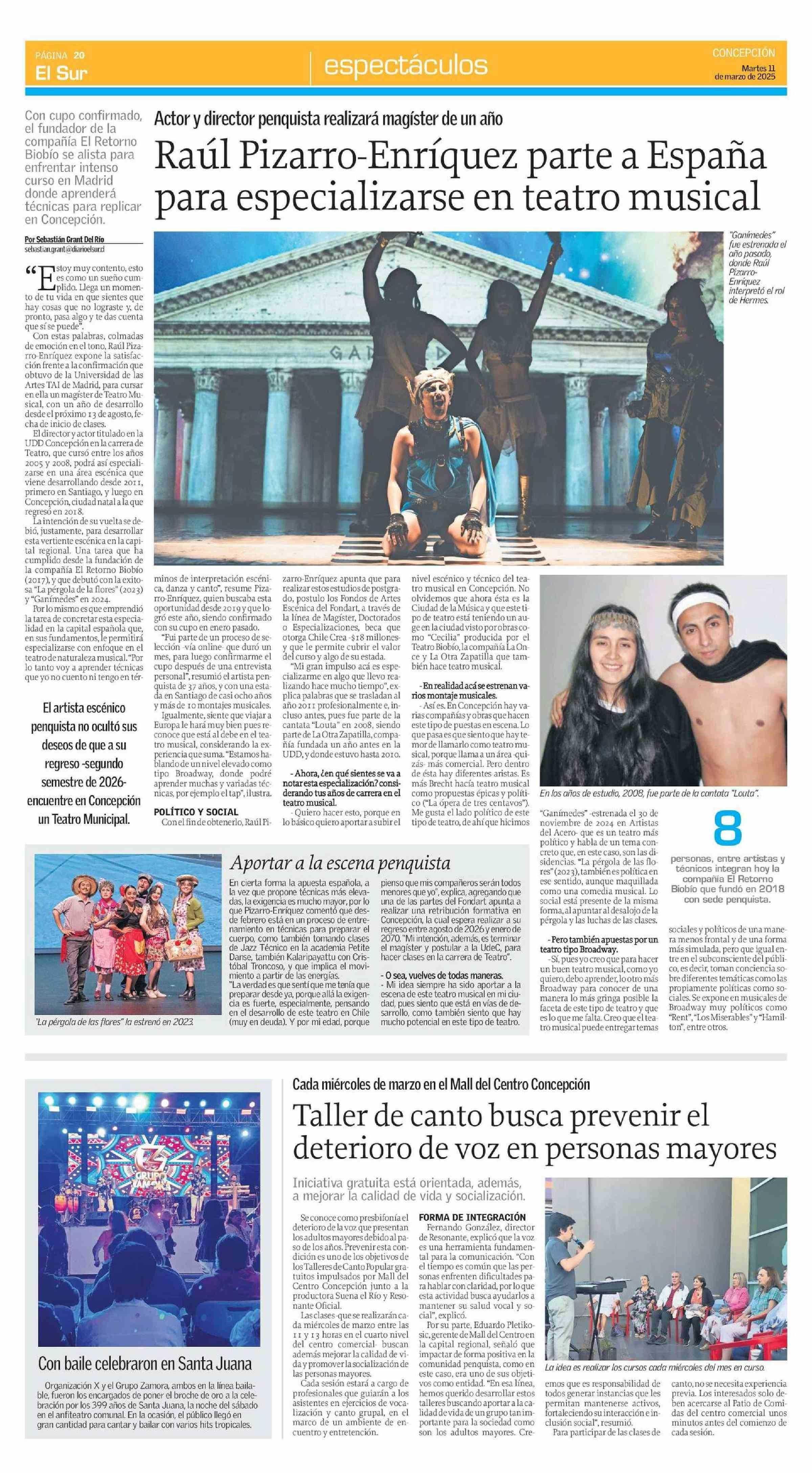 Raúl Pizarro-Enríquez parte a España para especializarse en teatro musical 11-03-2025 El Sur |