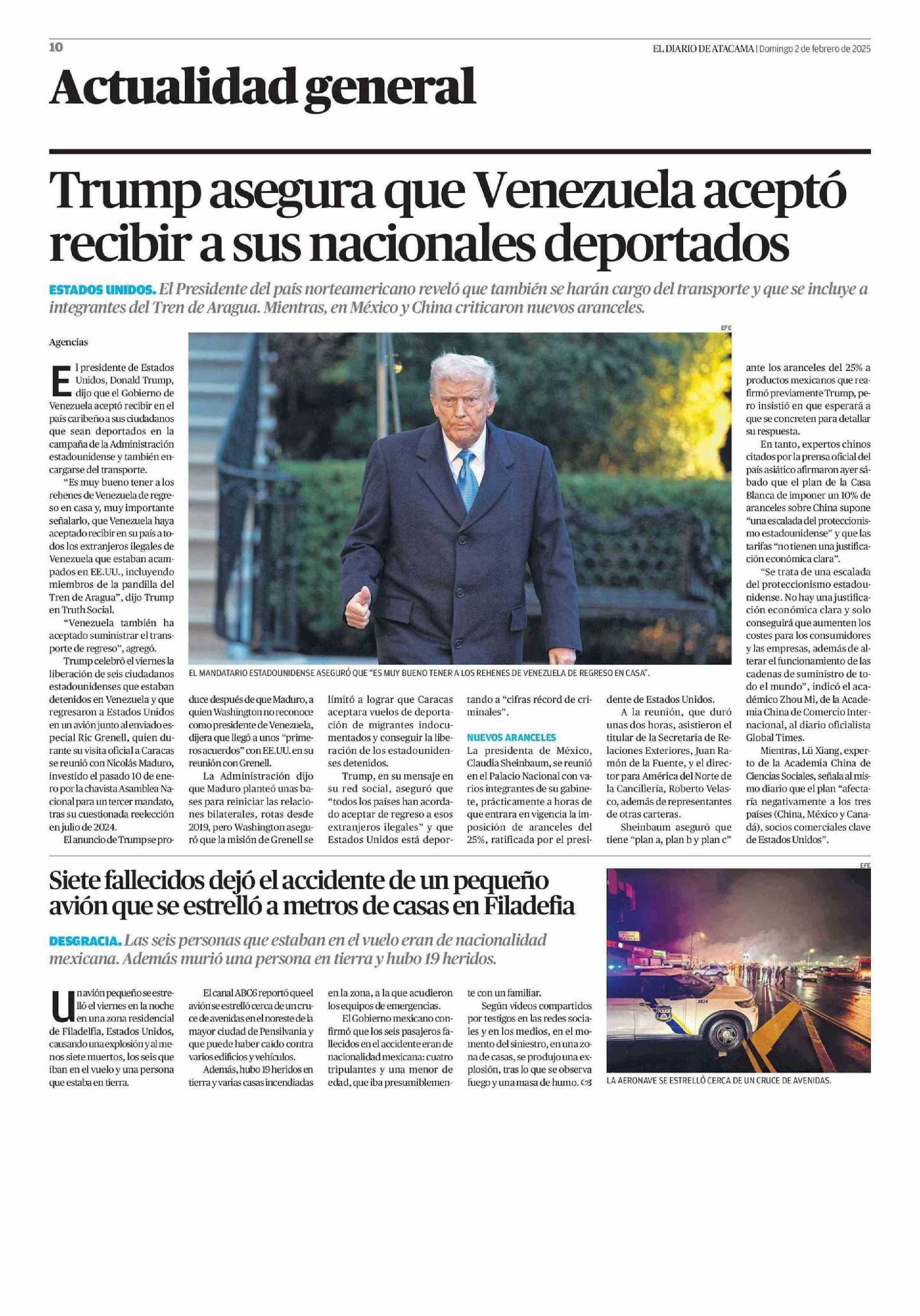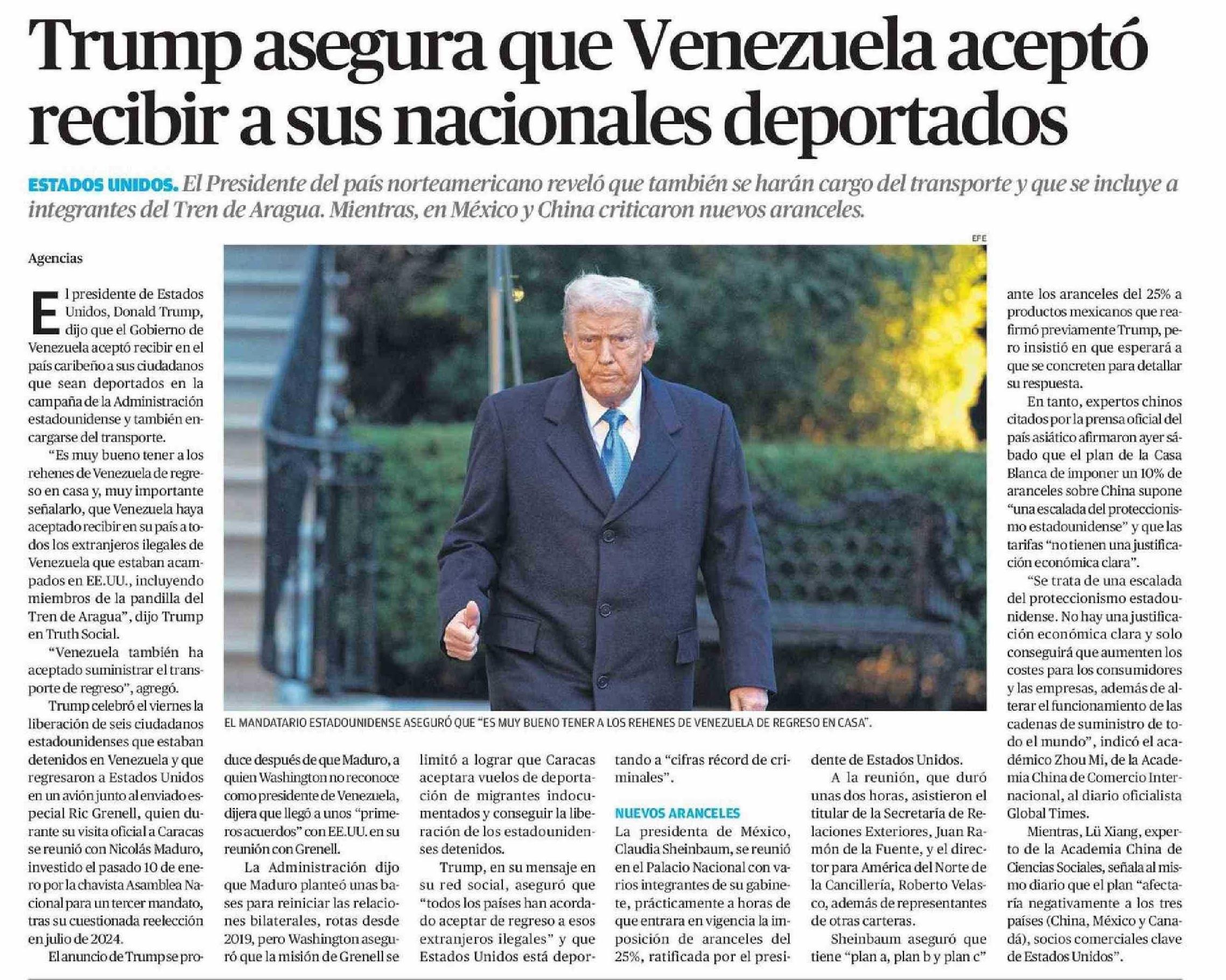 Trump asegura que Venezuela aceptó recibir a sus nacionales deportados 02-02-2025 El Diario de Atacama |