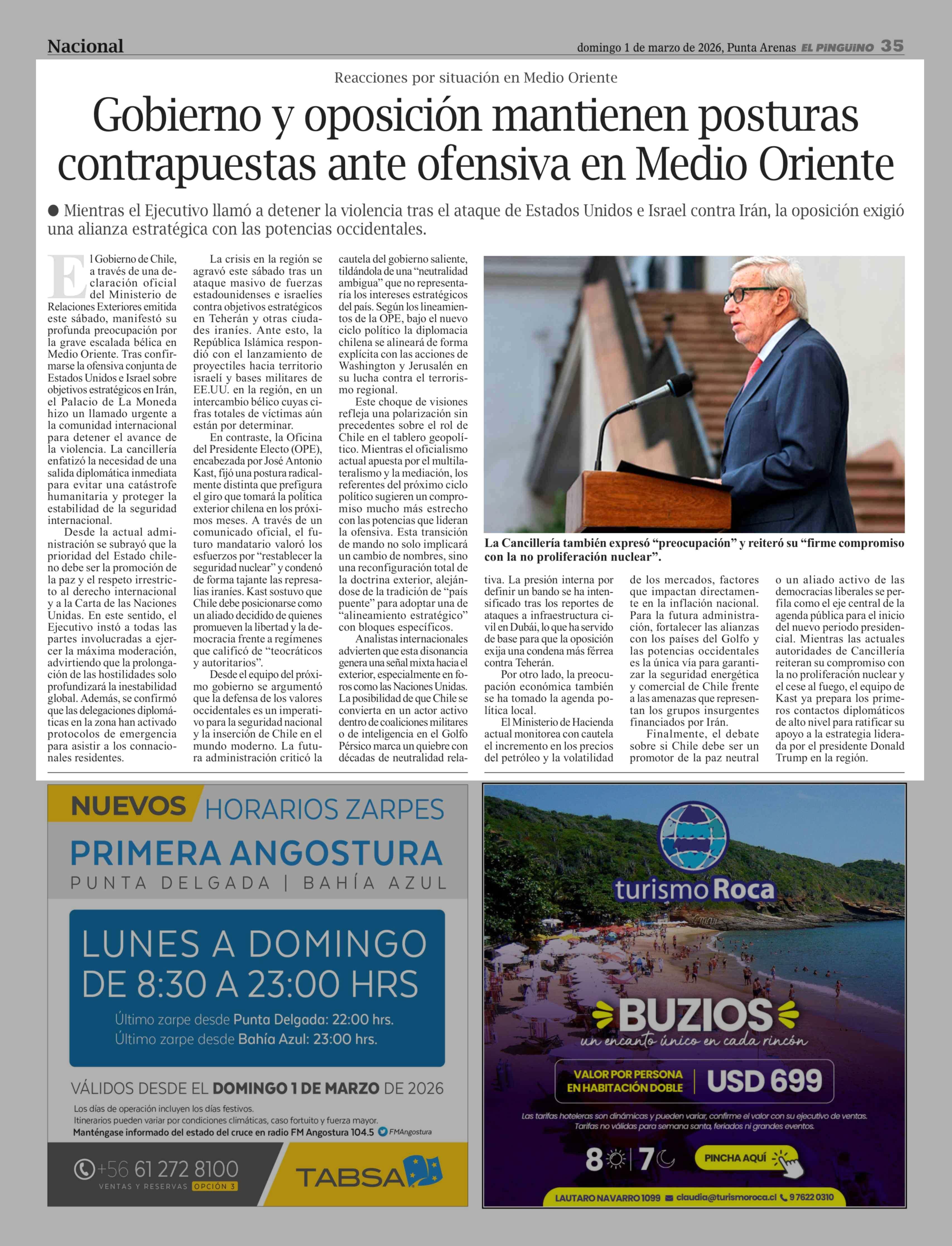 Fecha: 01-03-2026 Sector: Noticia general Región: Región de Magallanes y de la Antártica Chilena