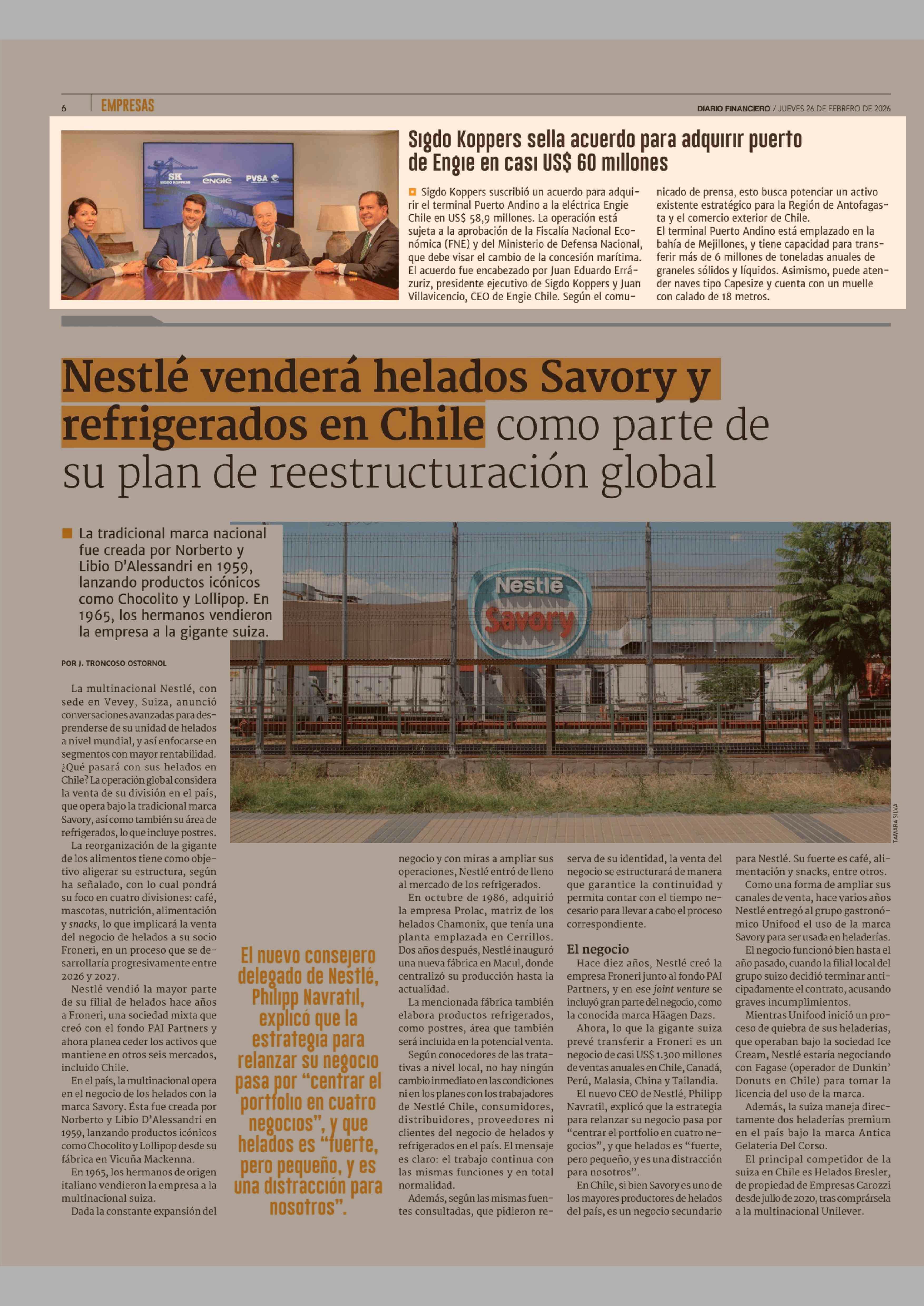 Título: Sigdo Koppers sella acuerdo para adquirir puerto de Engie en casi US$ 60 millones