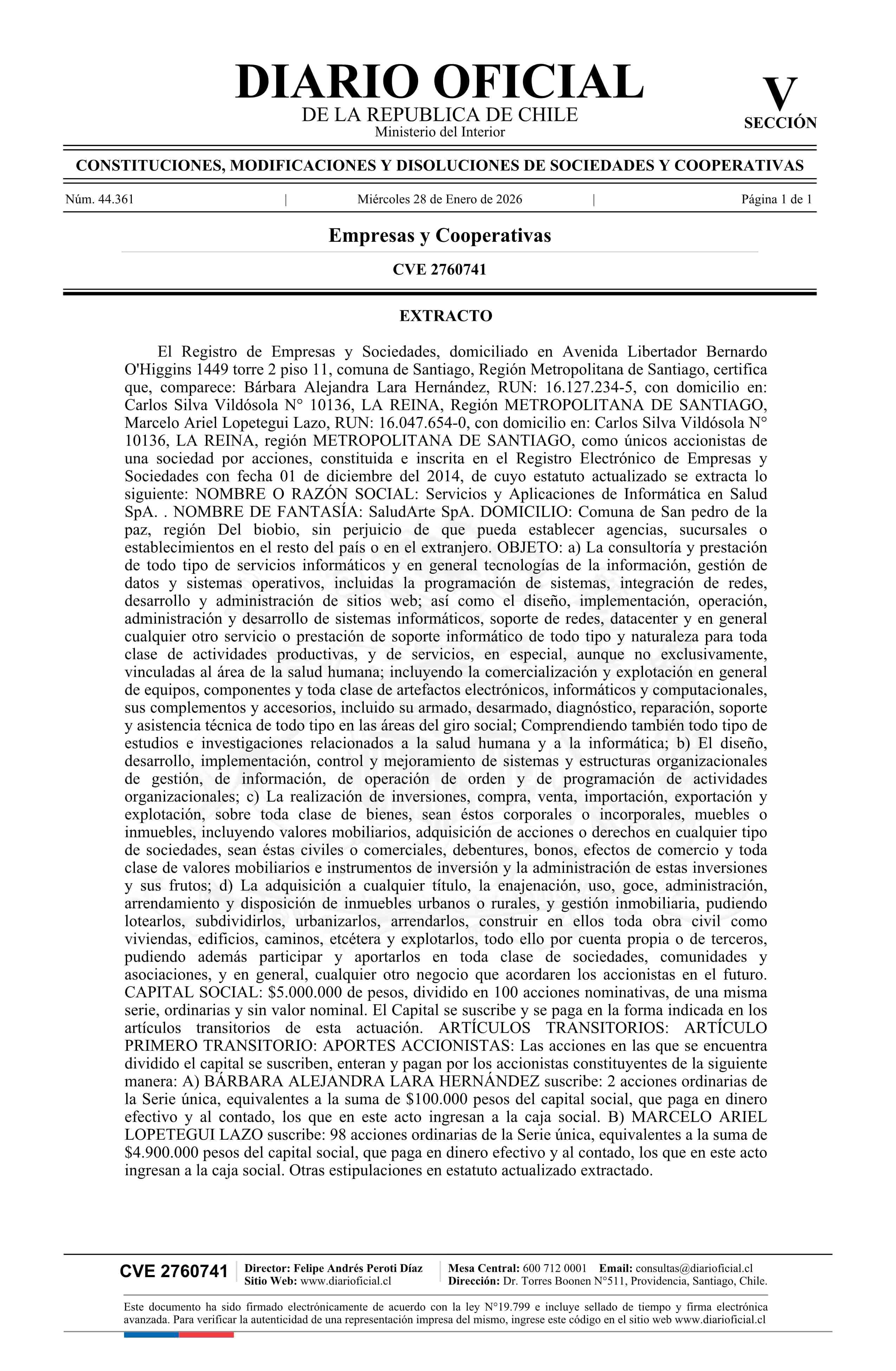 Servicios y Aplicaciones de Informática en Salud SpA 76.459.549-1 28-01-2026 Diario Oficial Edición Electrónica |