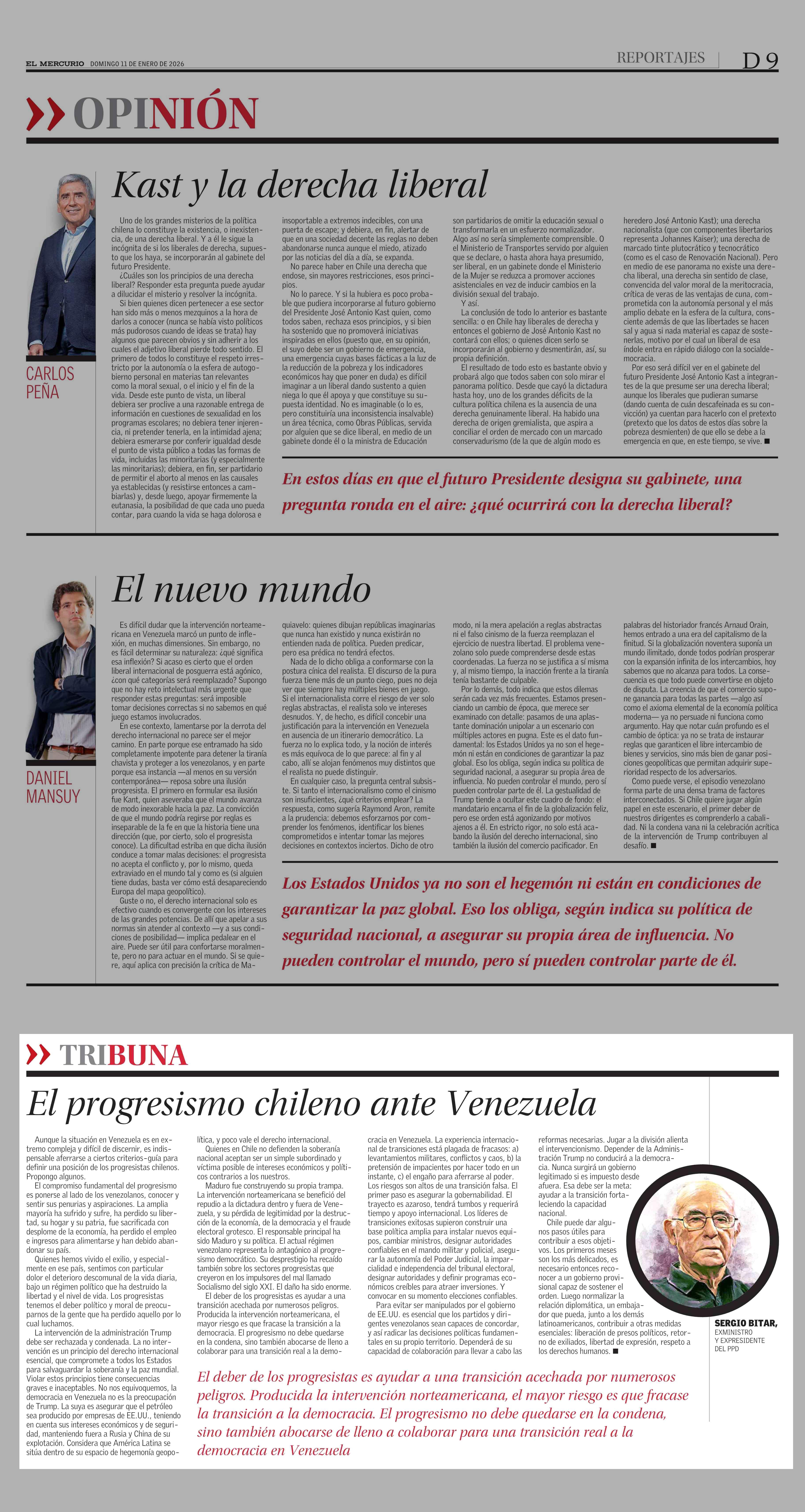 Columnas de Opinión: El progresismo chileno ante Venezuela 11-01-2026 El Mercurio |
