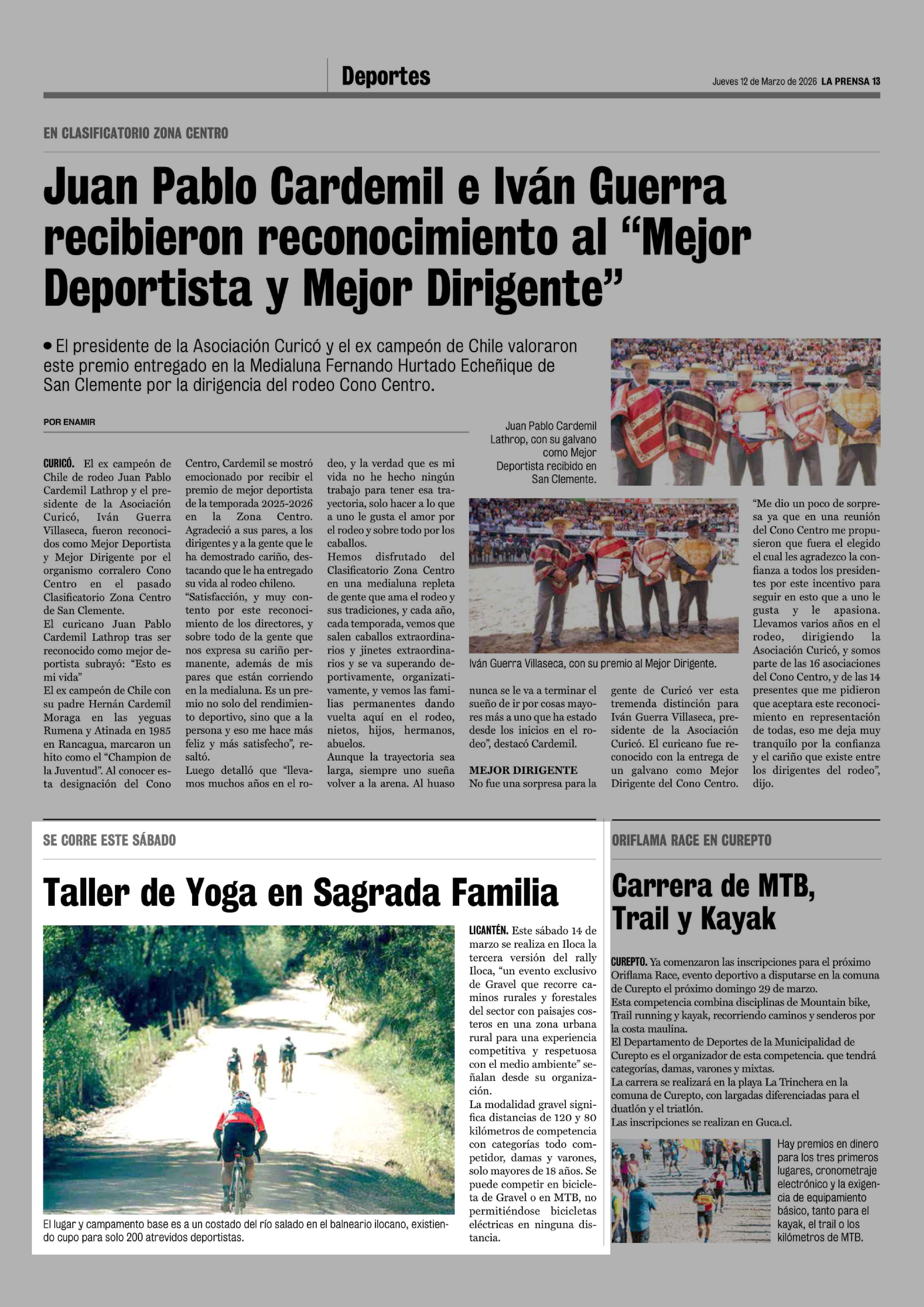 Fuente: La Prensa de Curicó (La Prensa de Curicó) Página(s): 13