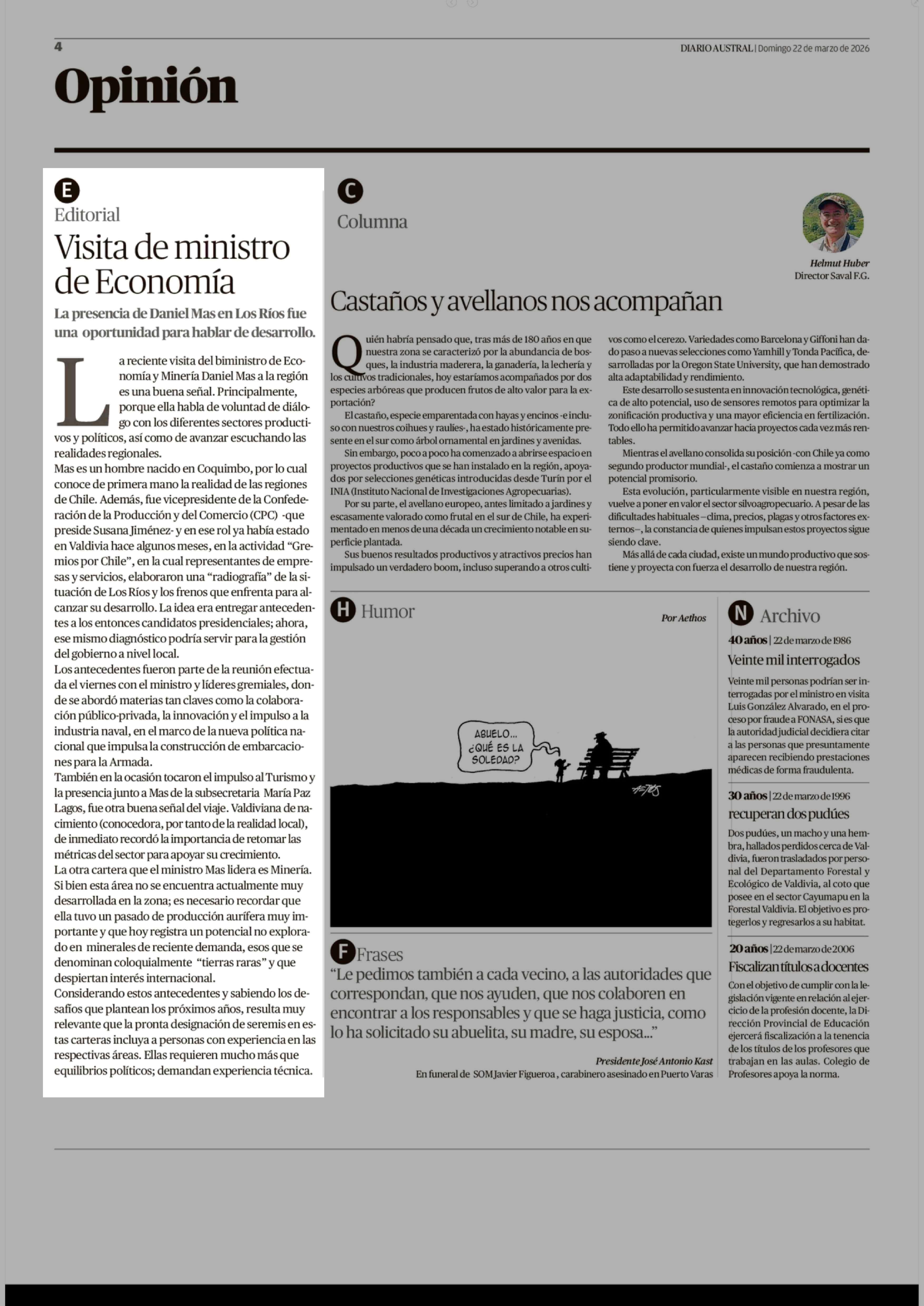 Fecha: 22-03-2026 Sector: Editorial Región: Región de Los Ríos