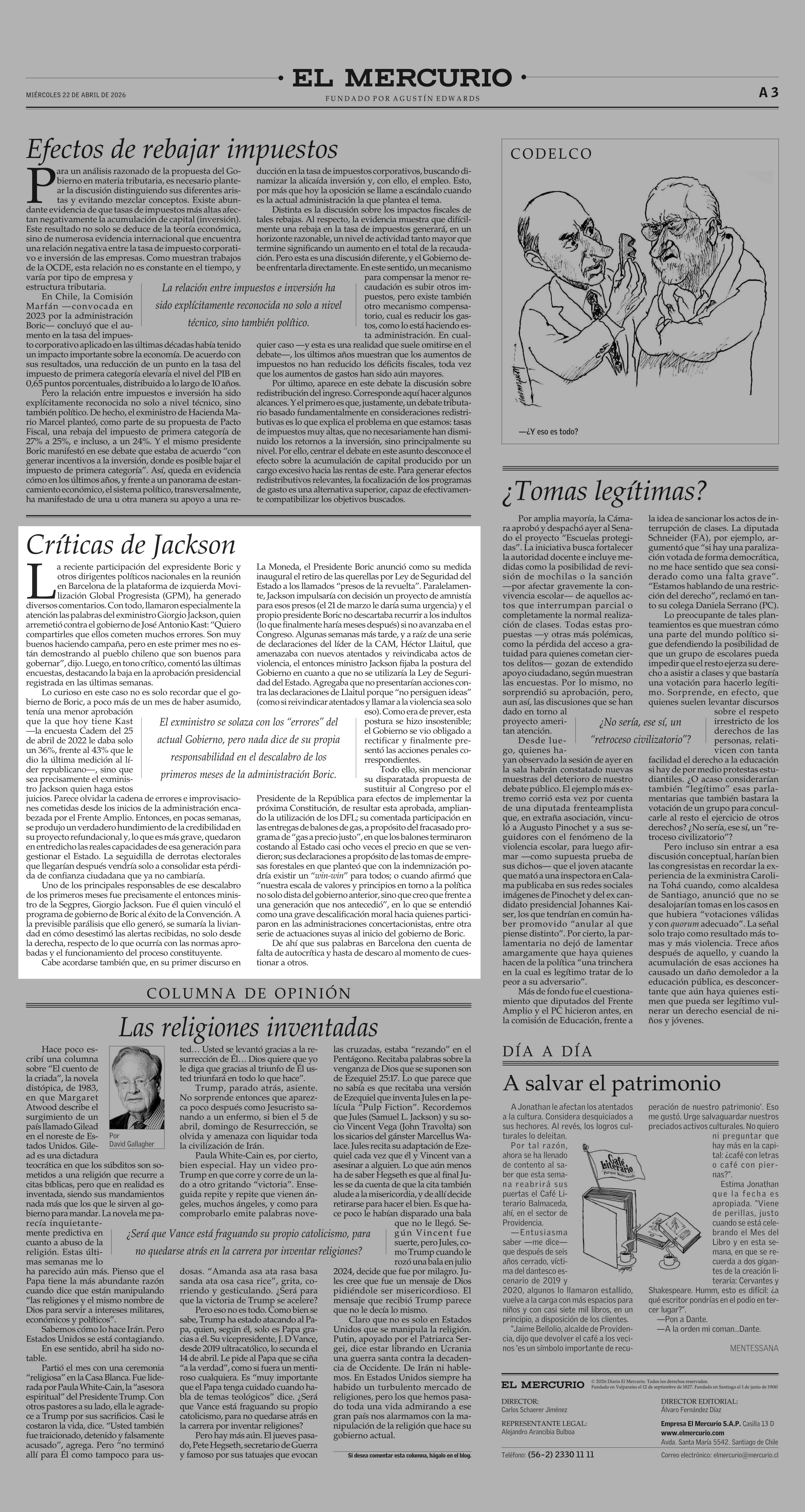 Editorial: Críticas de Jackson 22-04-2026 El Mercurio |