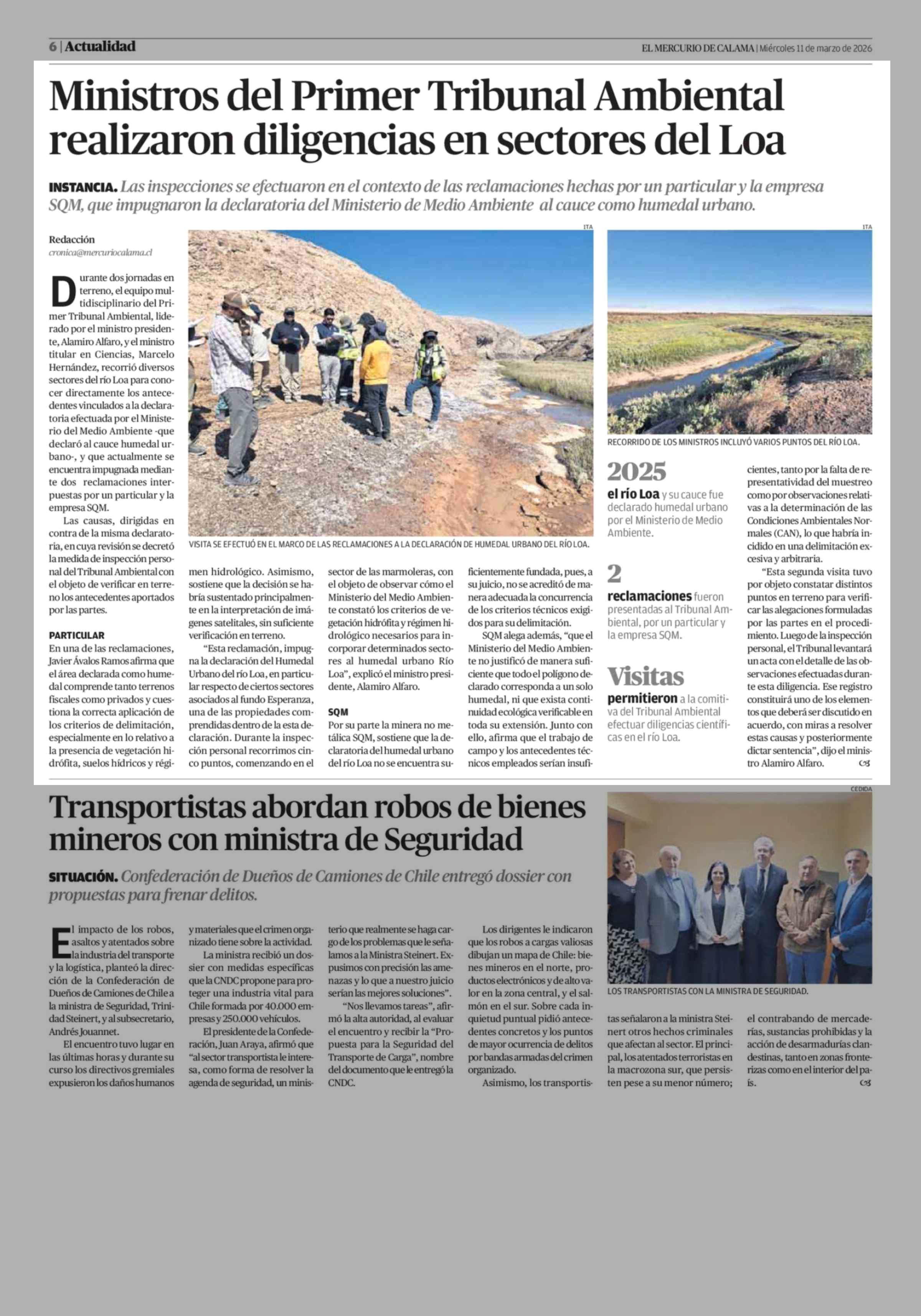 Título: Ministros del Primer Tribunal Ambiental realizaron diligencias en sectores del Loa