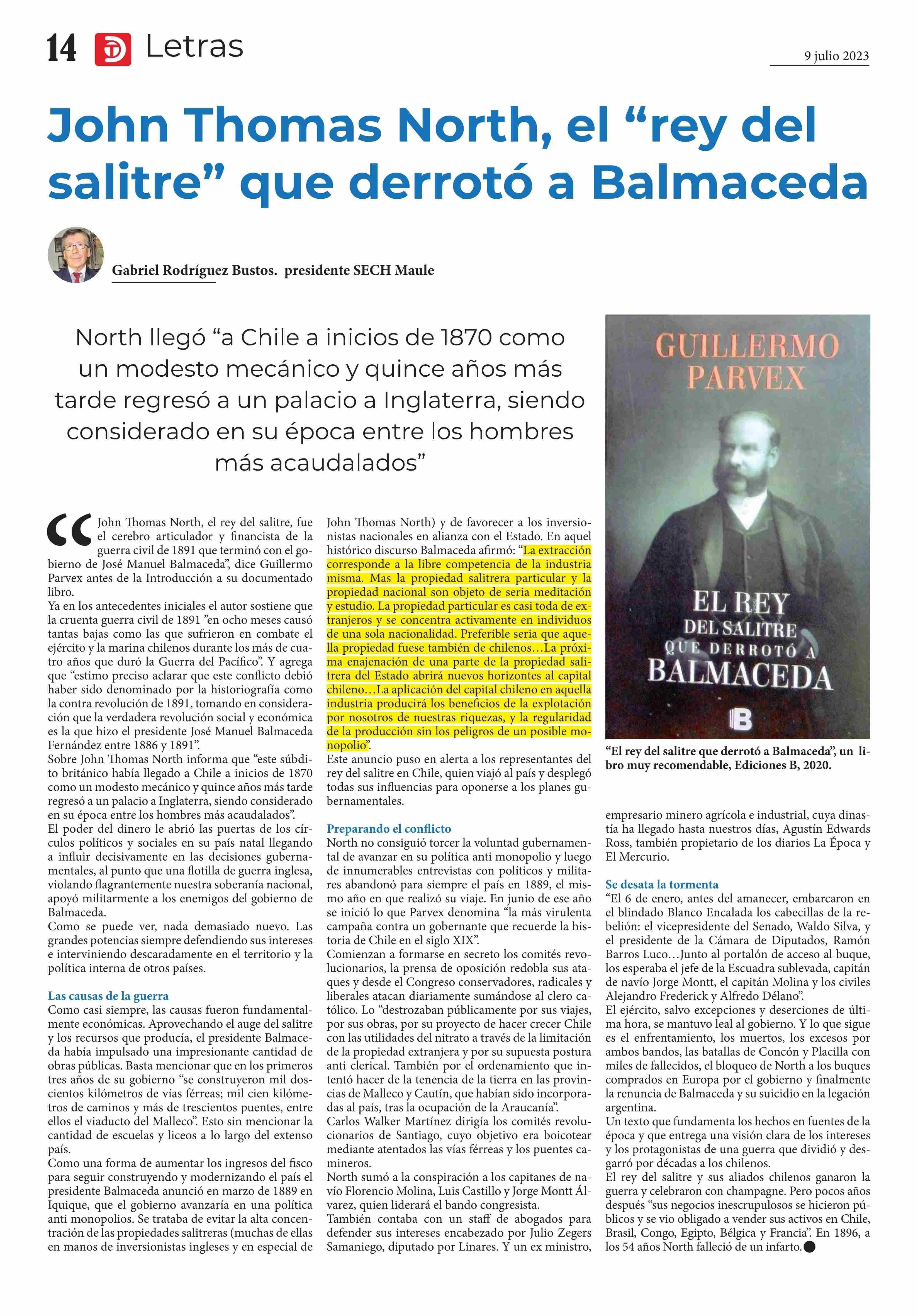Título: John Thomas North, el “rey del salitre” que derrotó a Balmaceda