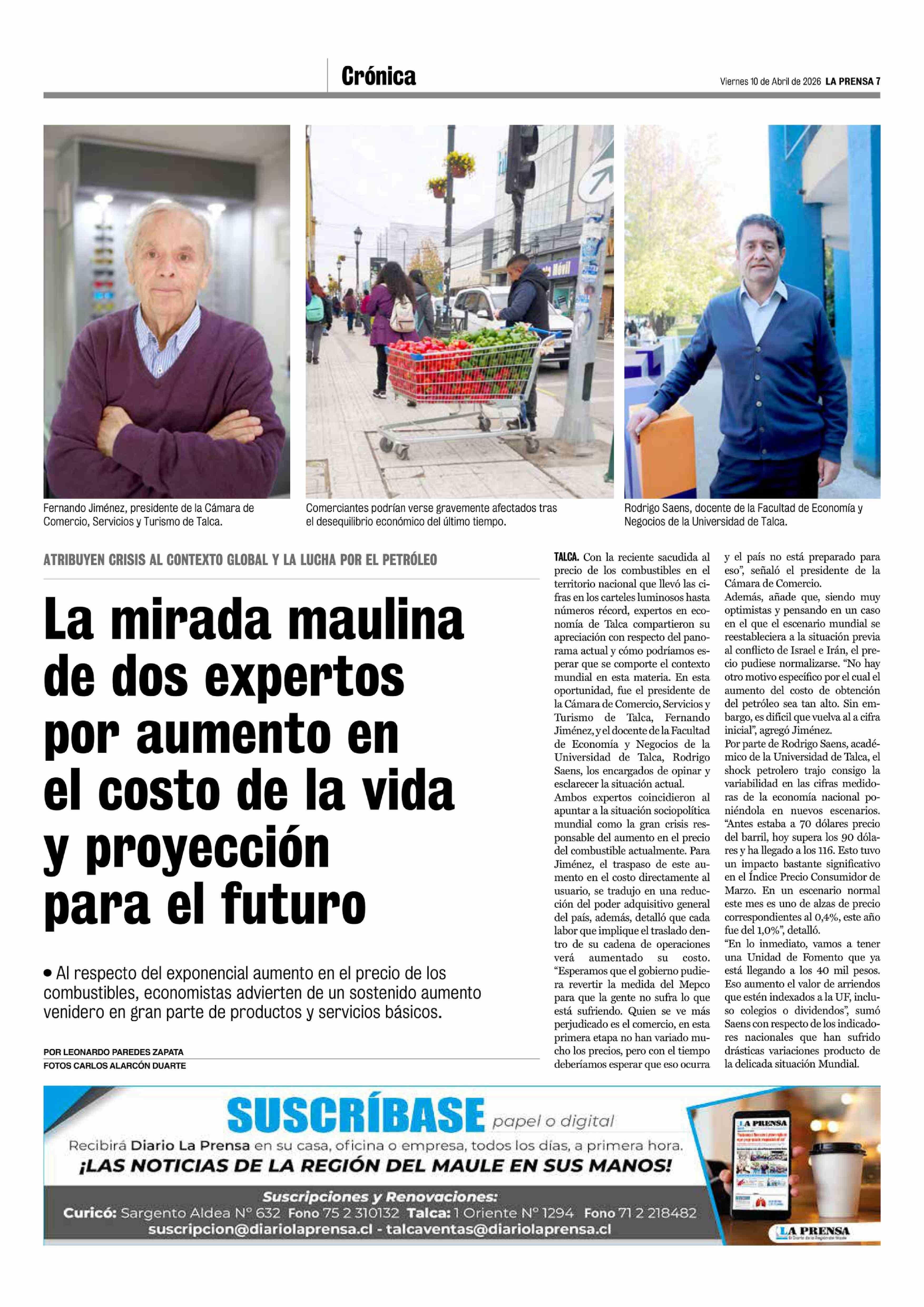 La mirada maulina de dos expertos por aumento en el costo de la vida y proyección para el futuro 10-04-2026 La Prensa de Curicó |