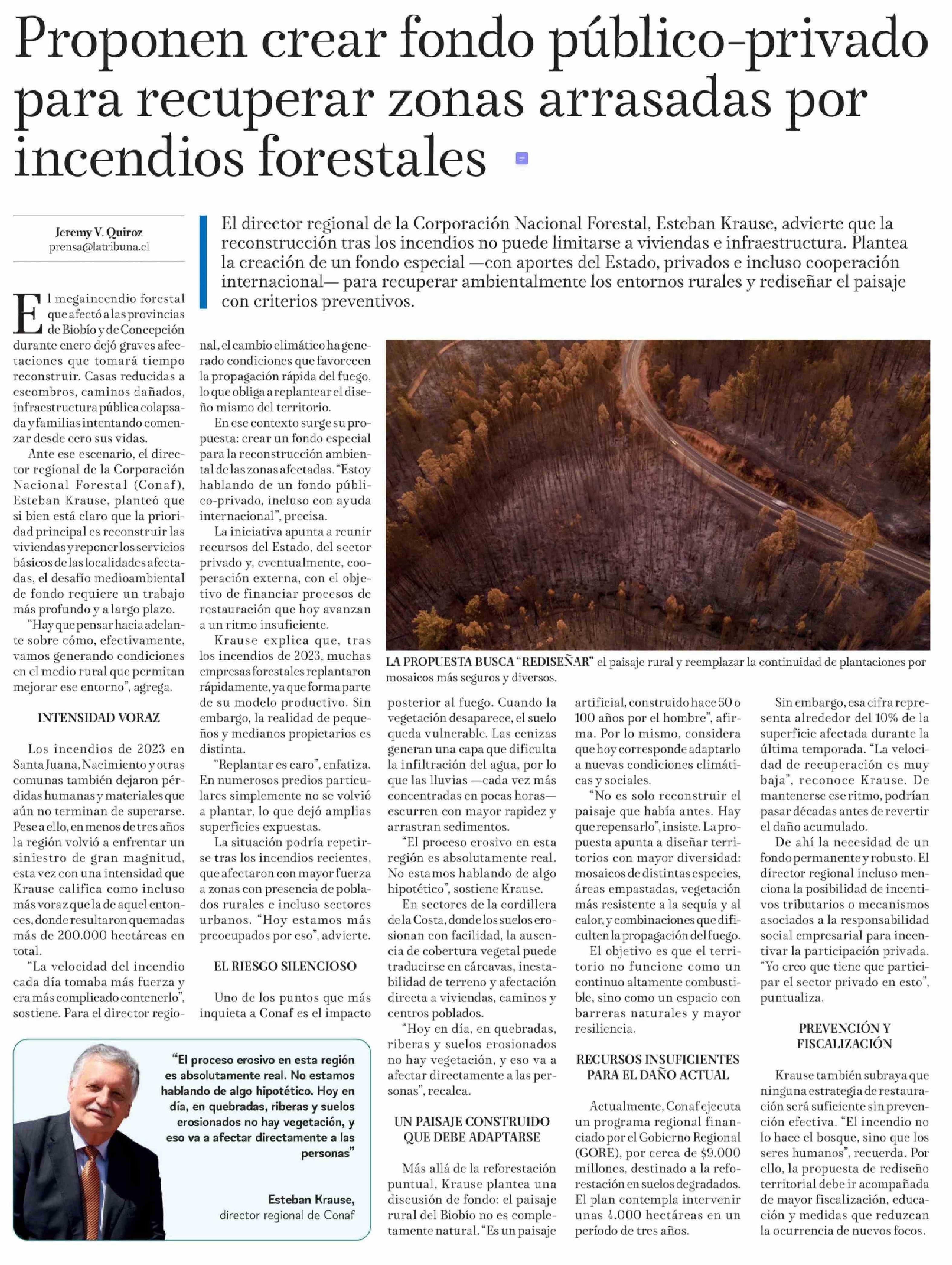 | Título: | Proponen crear fondo público-privado para recuperar zonas arrasadas por incendios forestales |