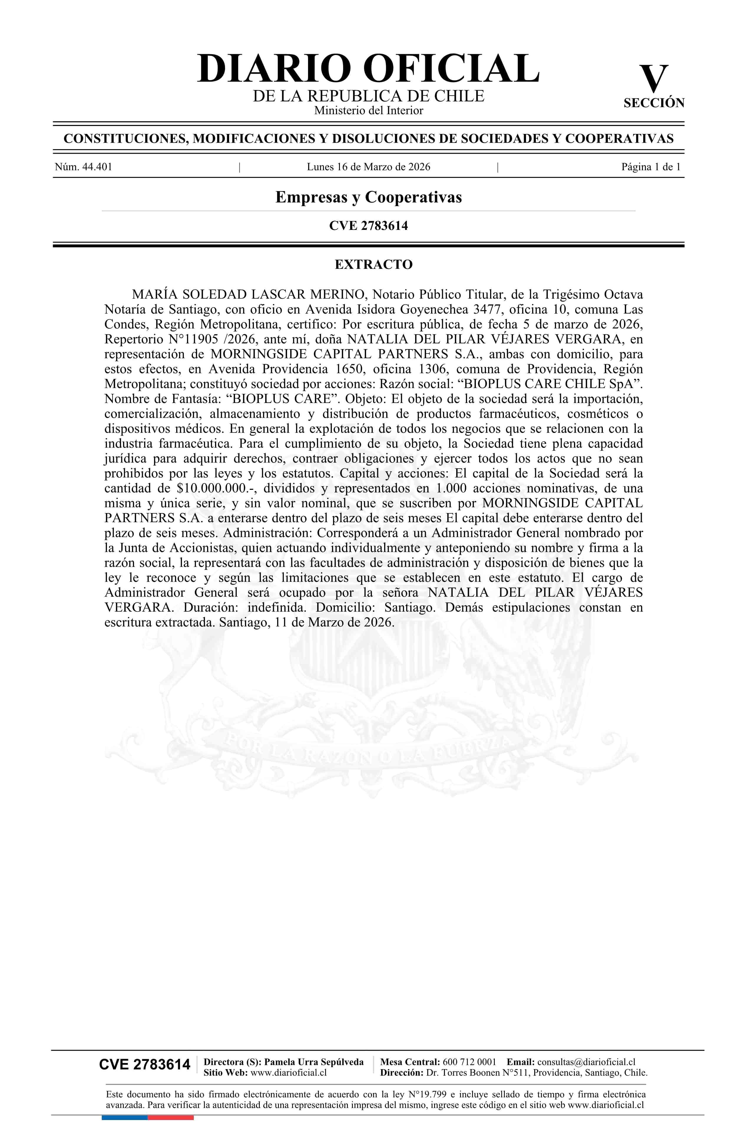 Título: BIOPLUS CARE CHILE SpA
