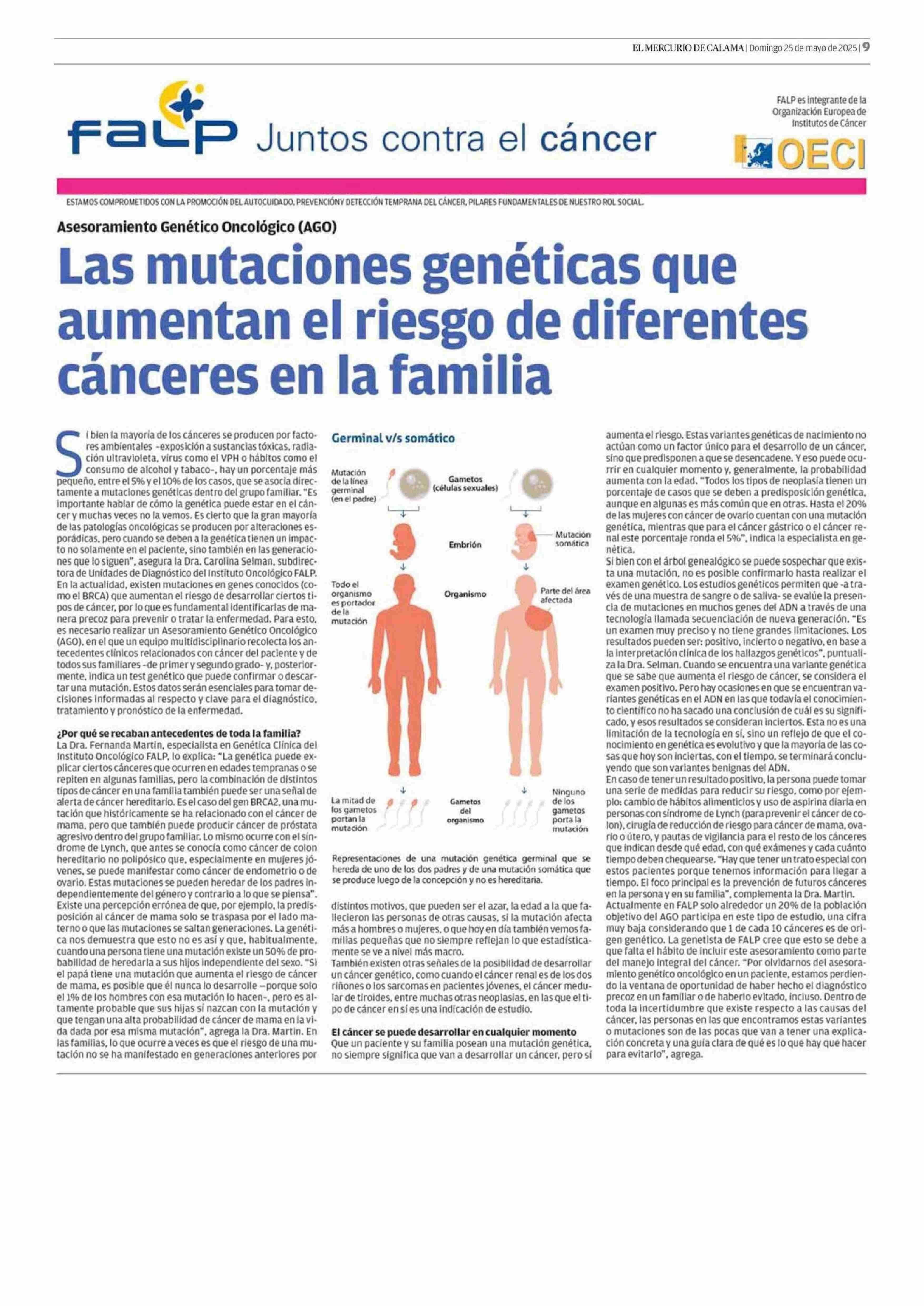 Las mutaciones genéticas que aumentan el riesgo de diferentes 25-05-2025 El Mercurio de Calama |