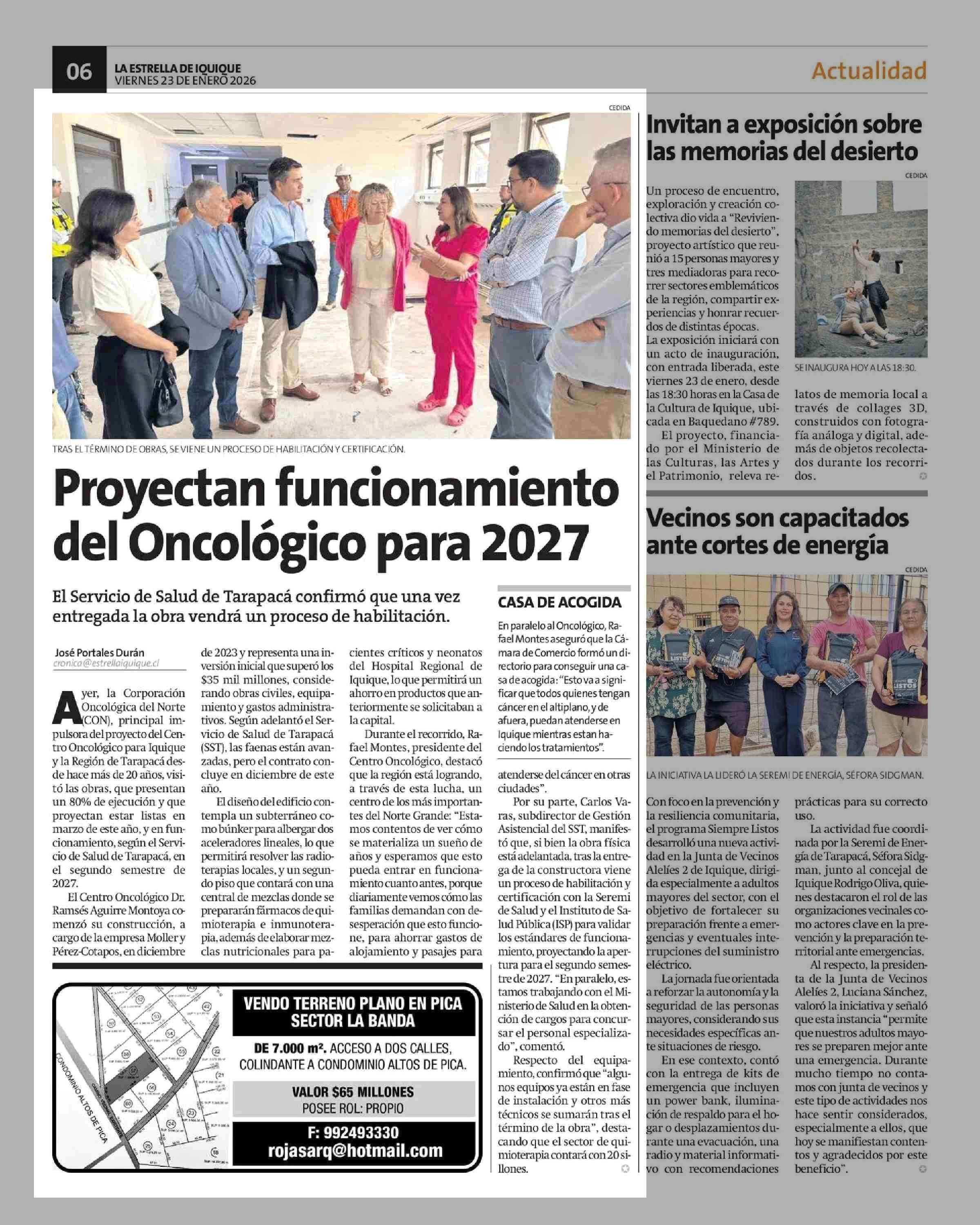 Fecha: 23-01-2026 Sector: Noticia general Región: Región de Tarapacá