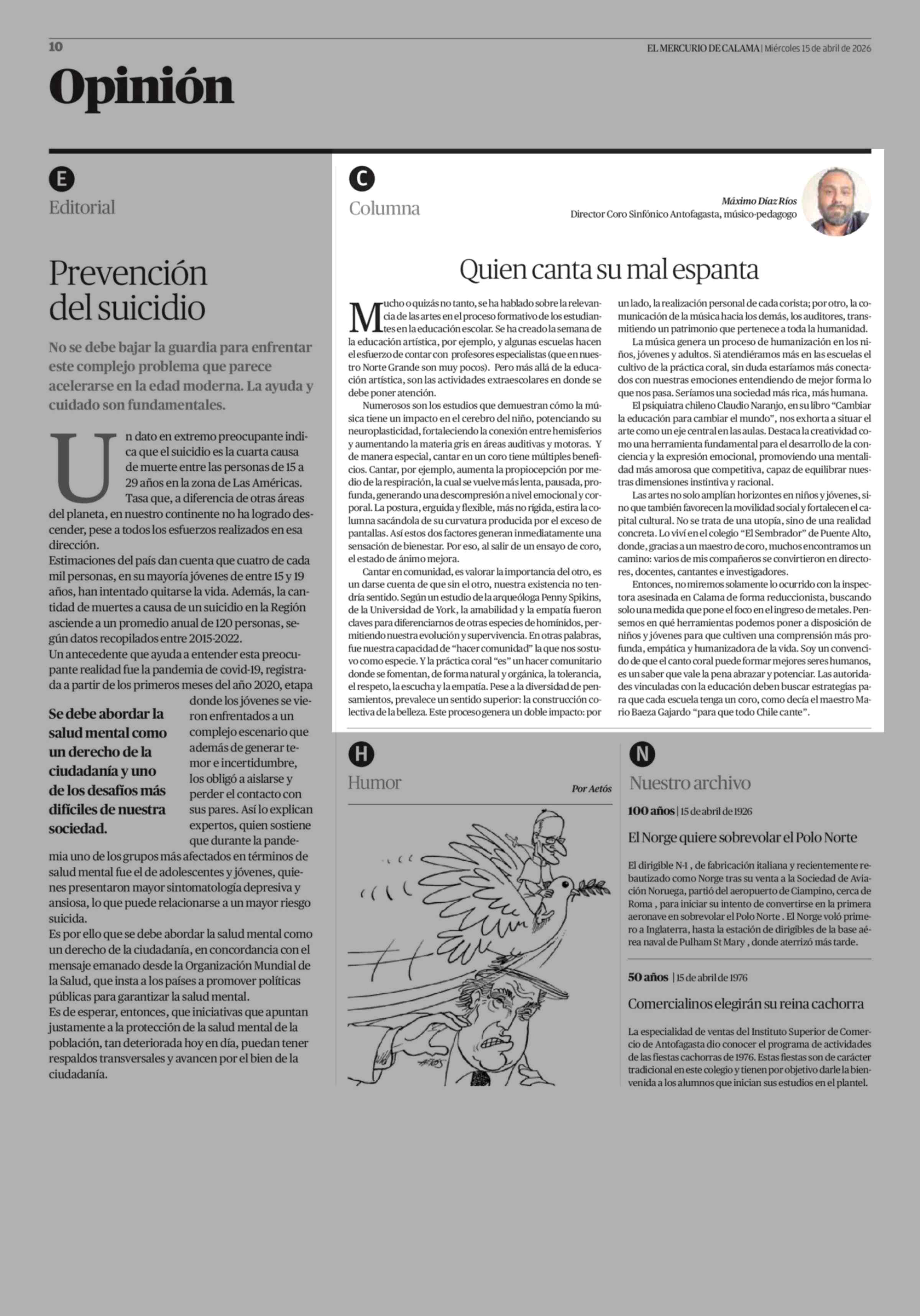 Fecha: 15-04-2026 Sector: Columnas de Opinión Región: Región de Antofagasta