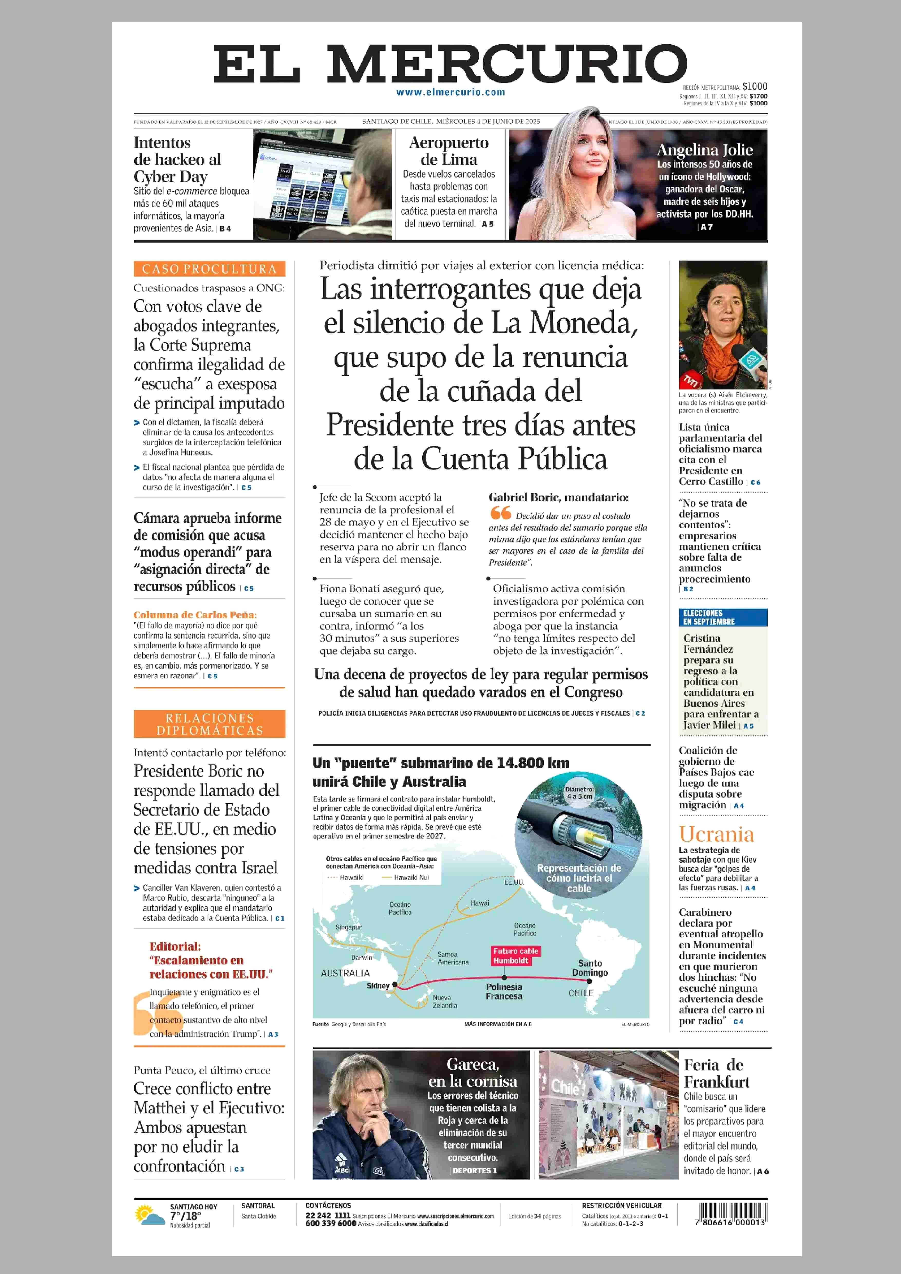 PORTADA EL MERCURIO (A) - CHILE 04-06-2025 El Mercurio |