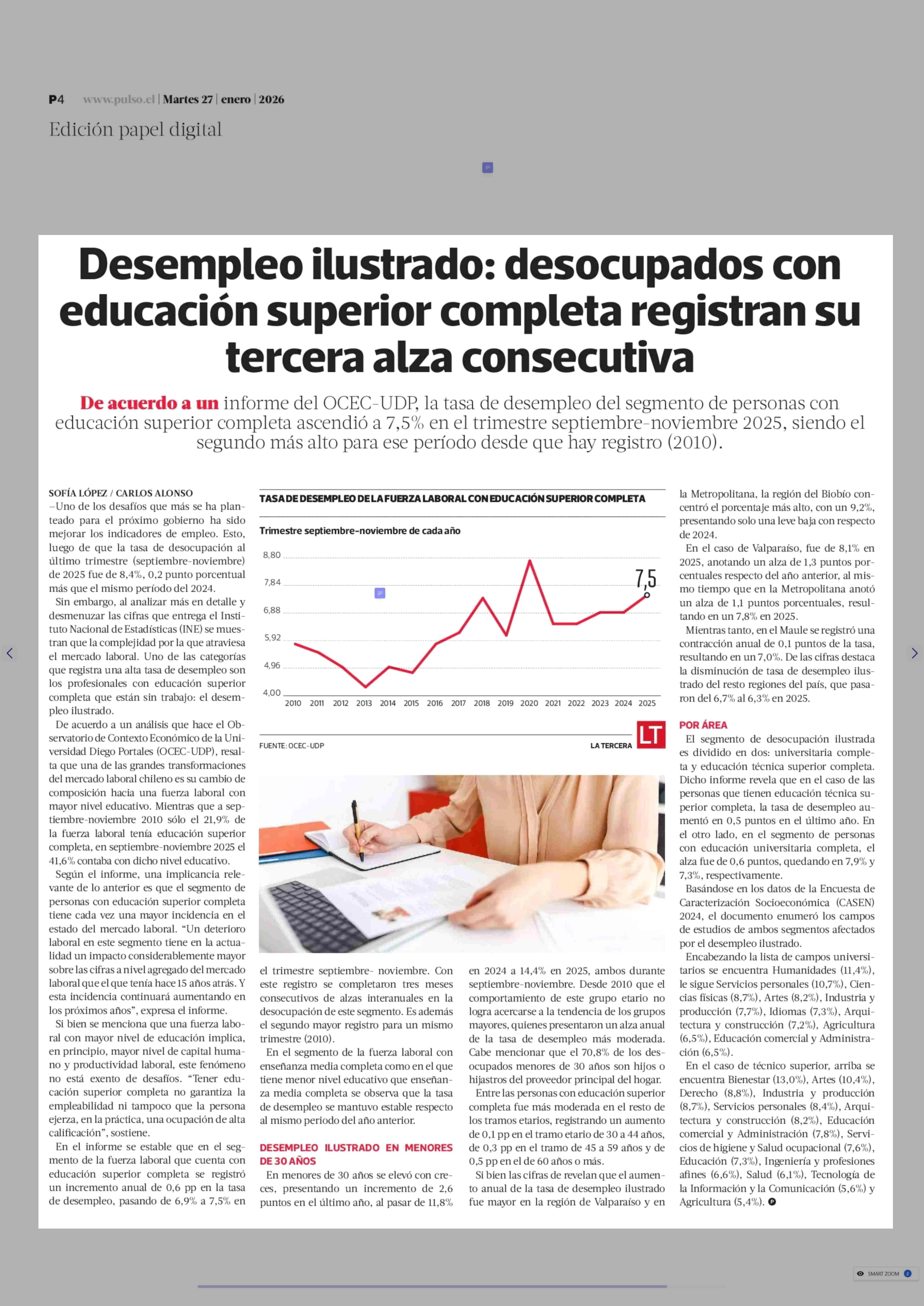 Título: Desempleo ilustrado: desocupados con educación superior completa registran su tercera alza consecutiva