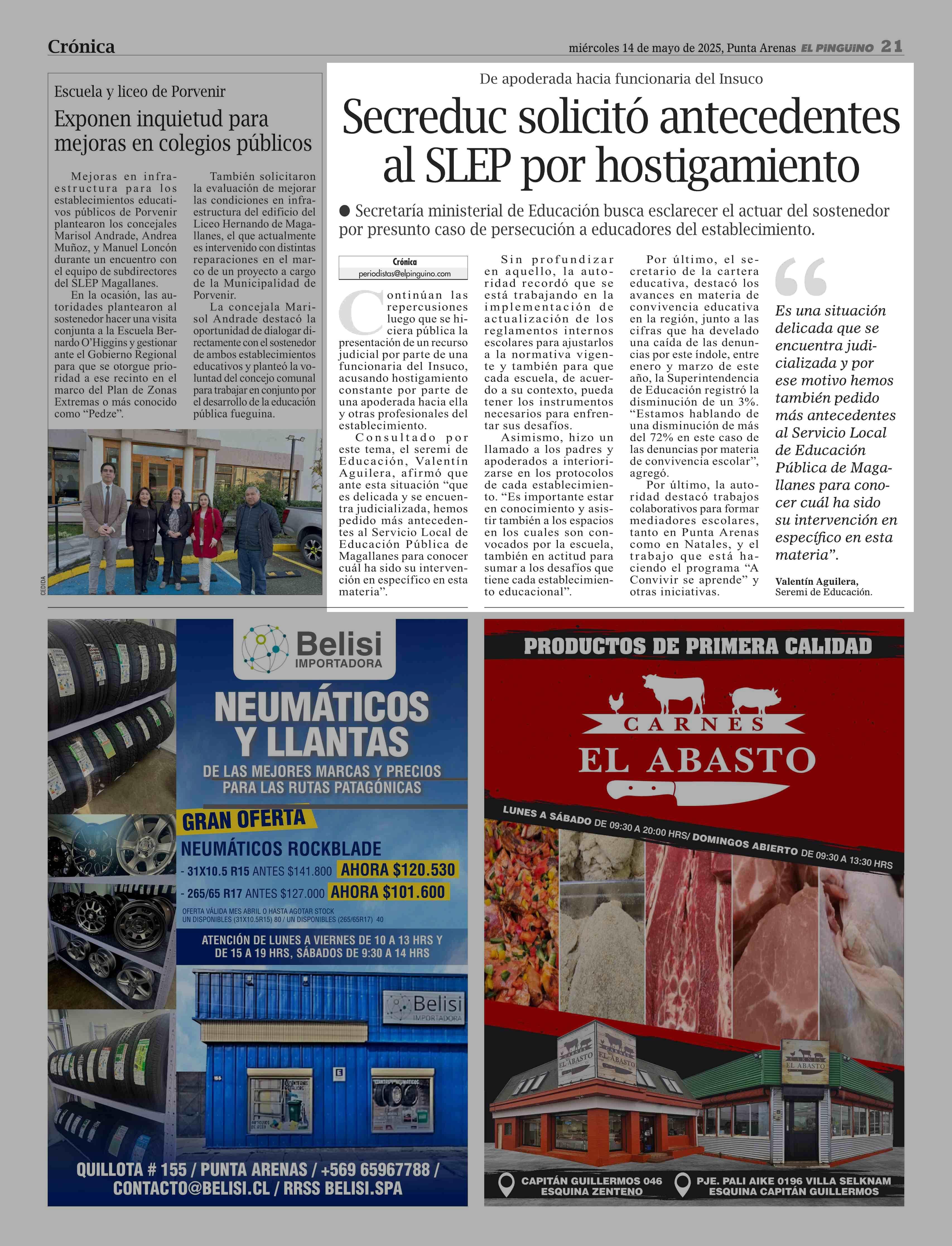 Secreduc solicitó antecedentes al SLEP por hostigamiento 14-05-2025 El Pingüino |