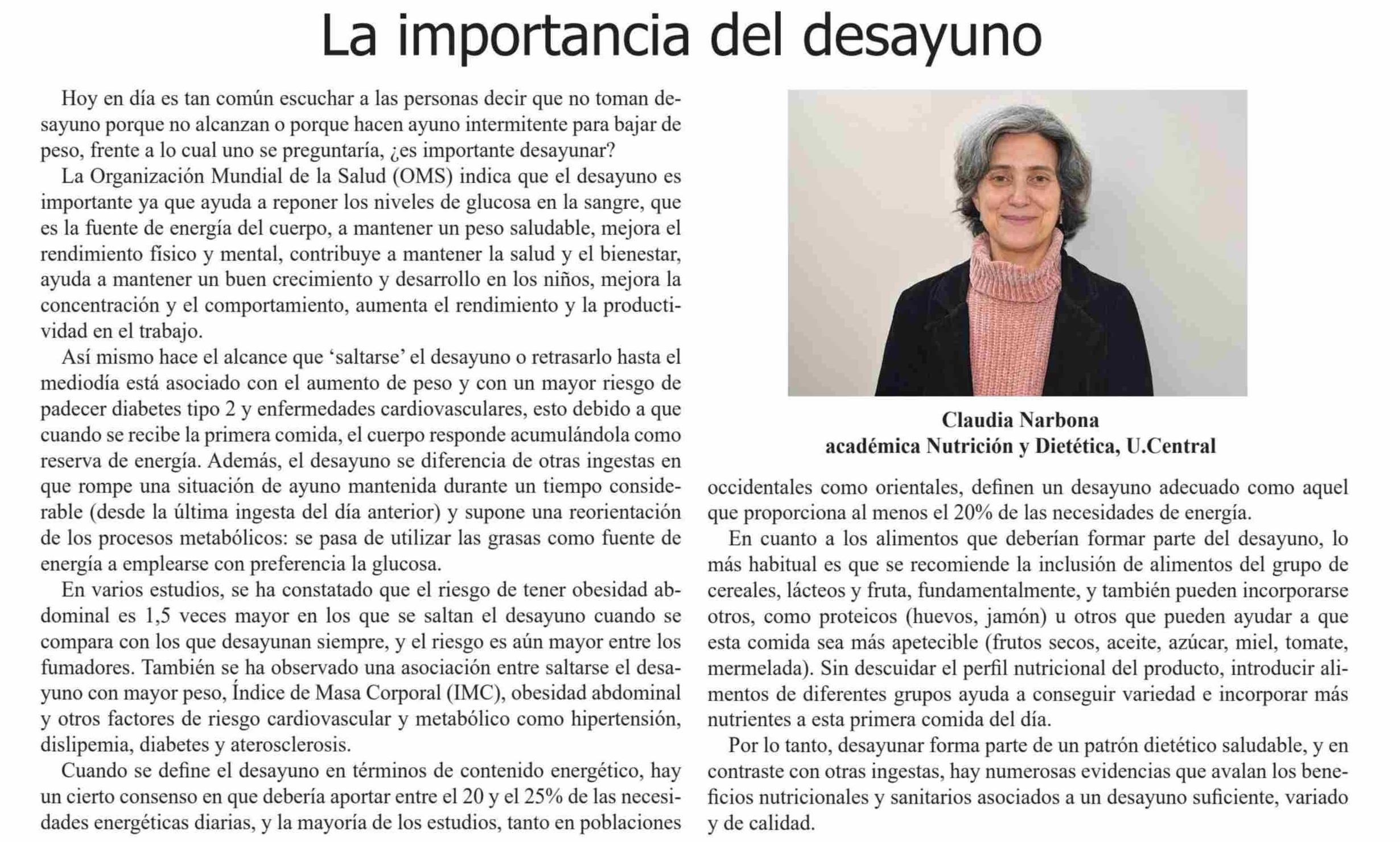 | Título: | COLUMNAS DE OPINIÓN: La importancia del desayuno |