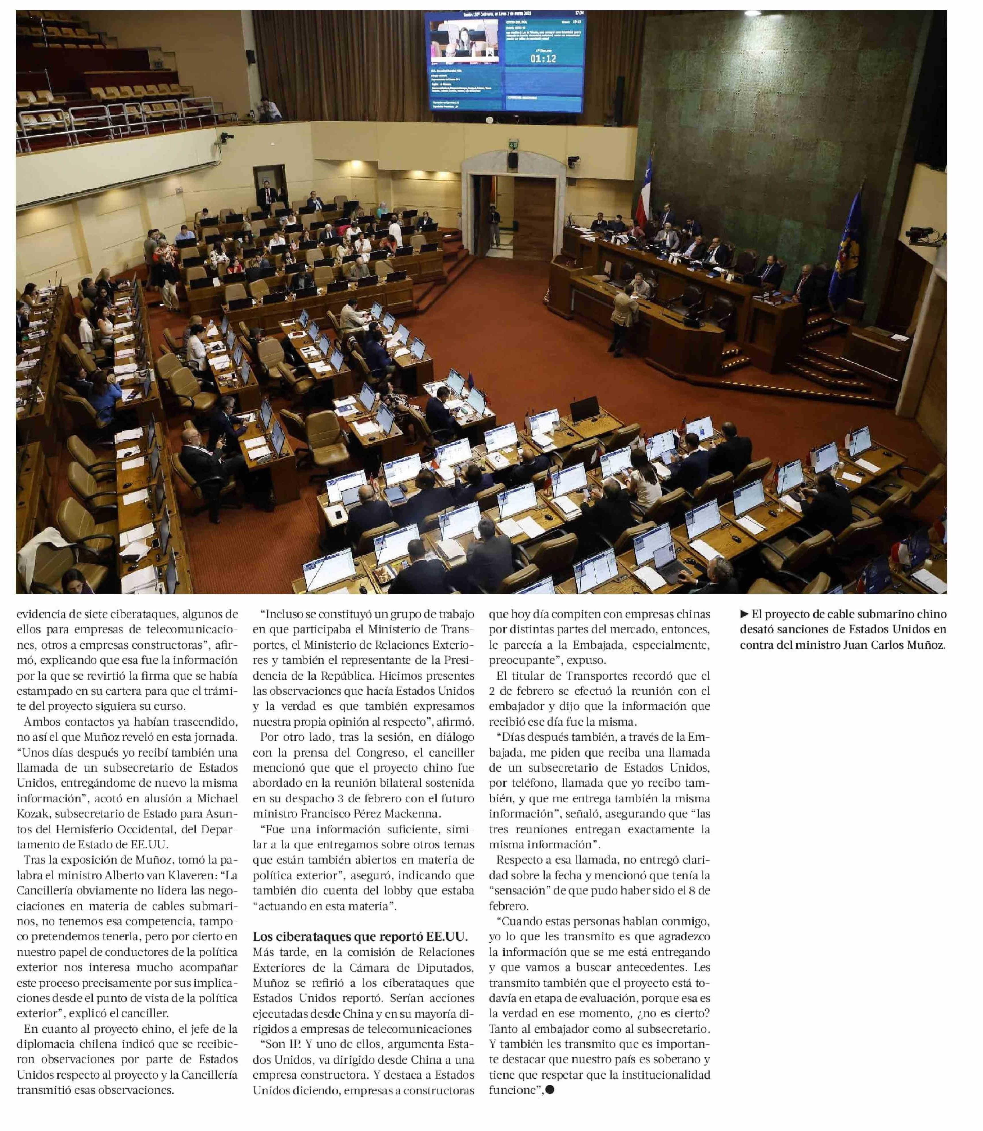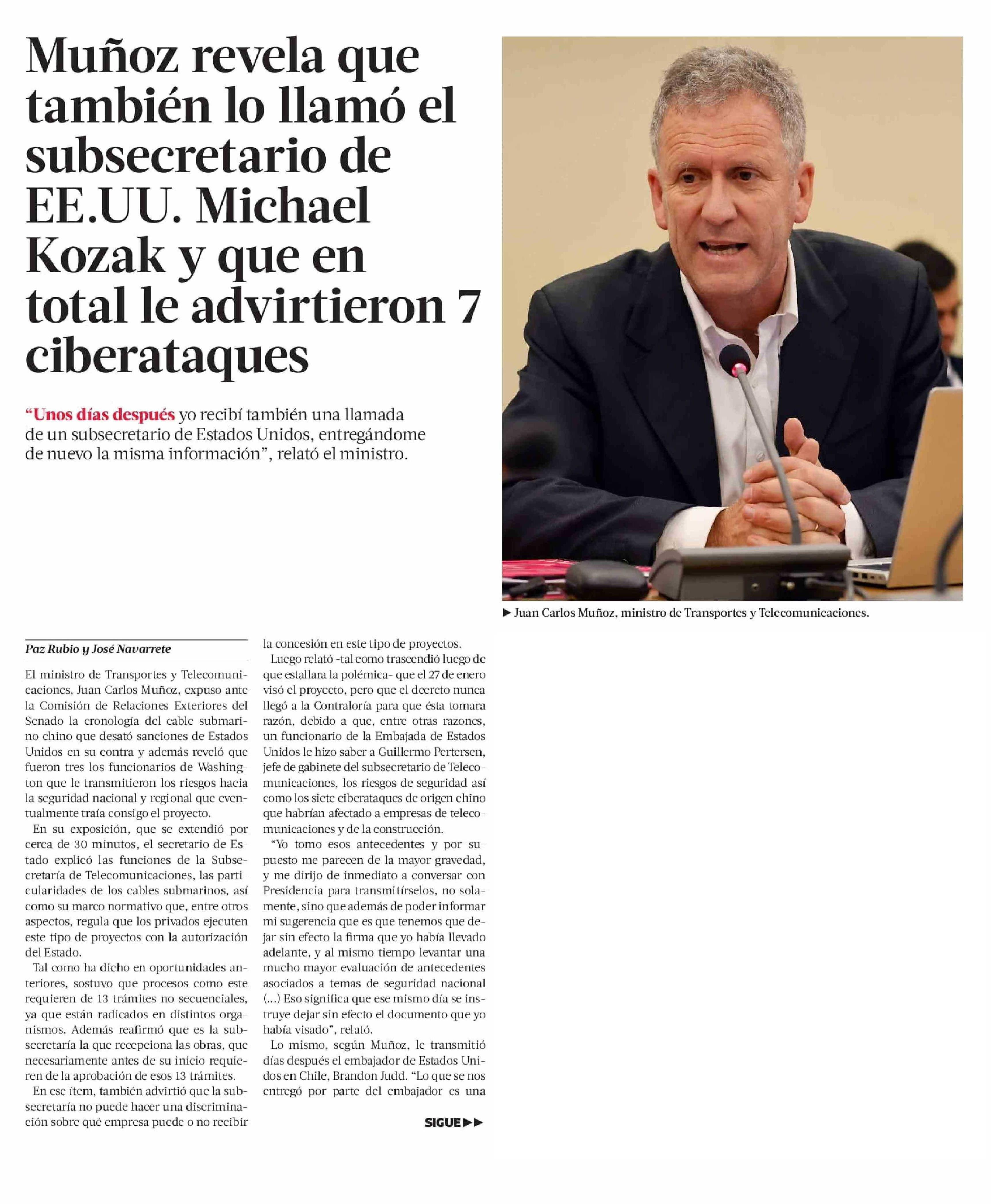 Muñoz revela que también lo llamó el subsecretario de EE.UU. Michael Kozak y que en total le advirtieron 7 ciberataques 04-03-2026 La Tercera |