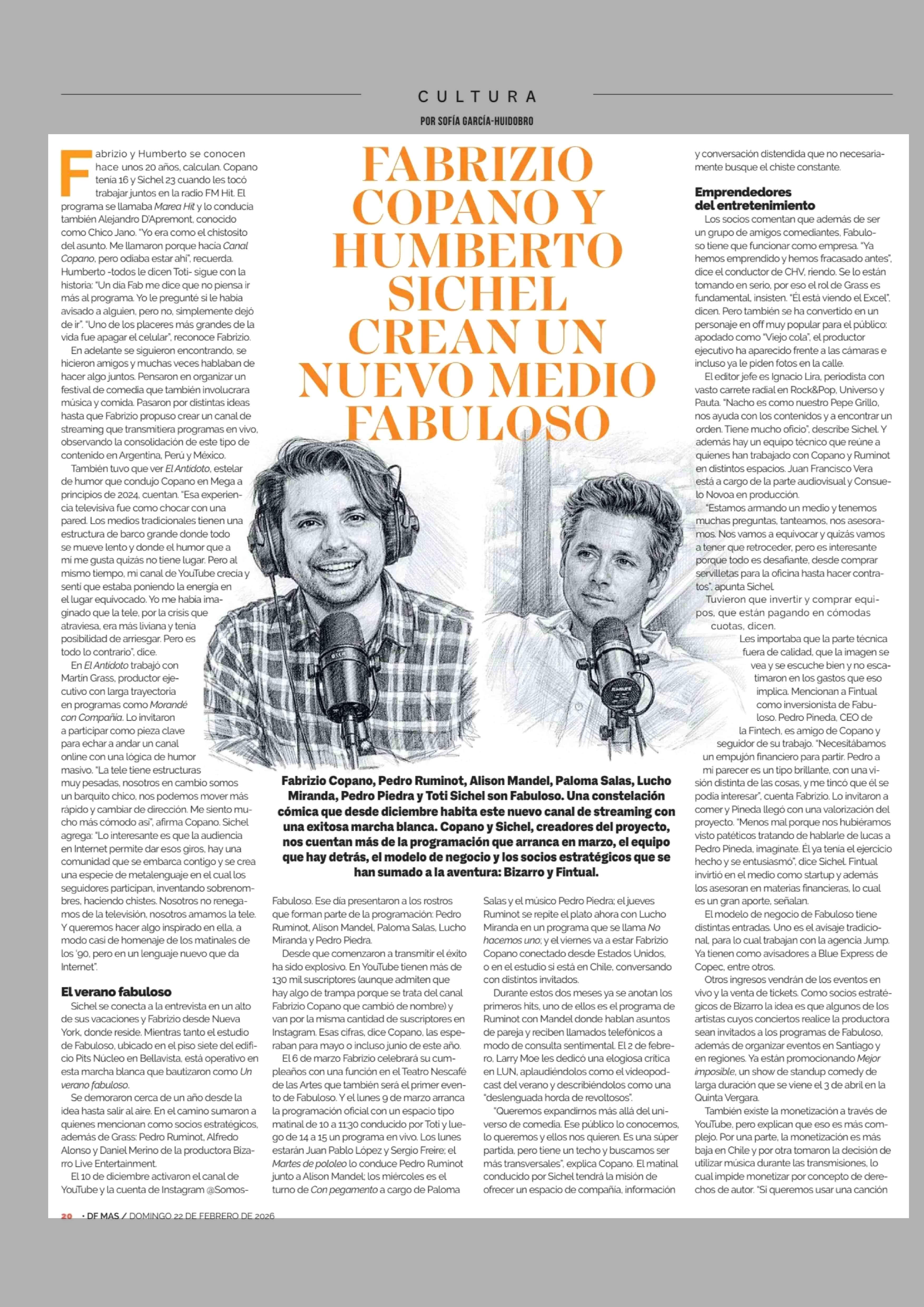FABRIZIO COPANO Y HUMBERTO SICHEL CREAN UN NUEVO MEDIO FABULOSO 22-02-2026 Diario Financiero |