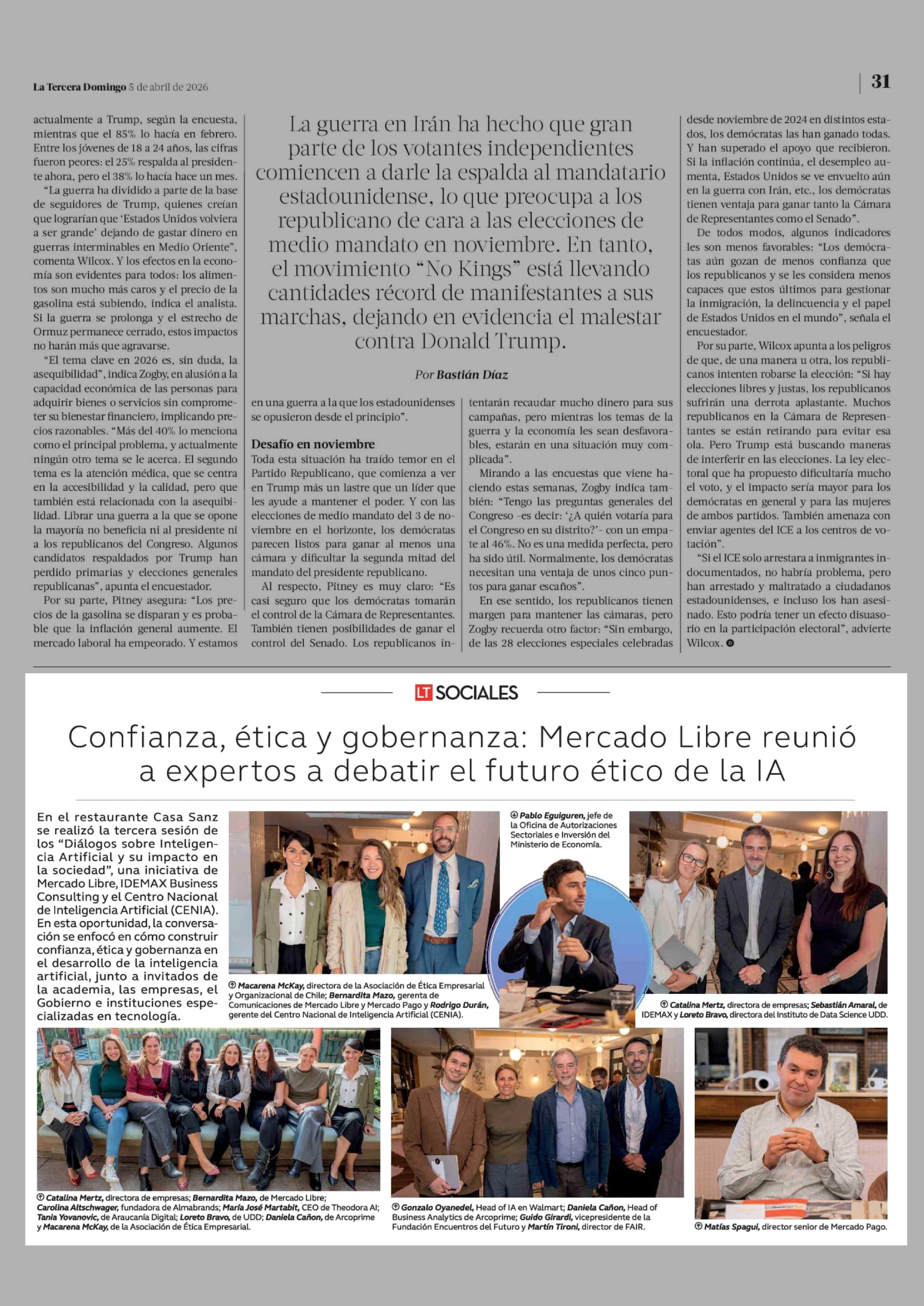 Confianza, ética y gobernanza: Mercado Libre reunió a expertos a debatir el futuro ético de la IA 05-04-2026 La Tercera |