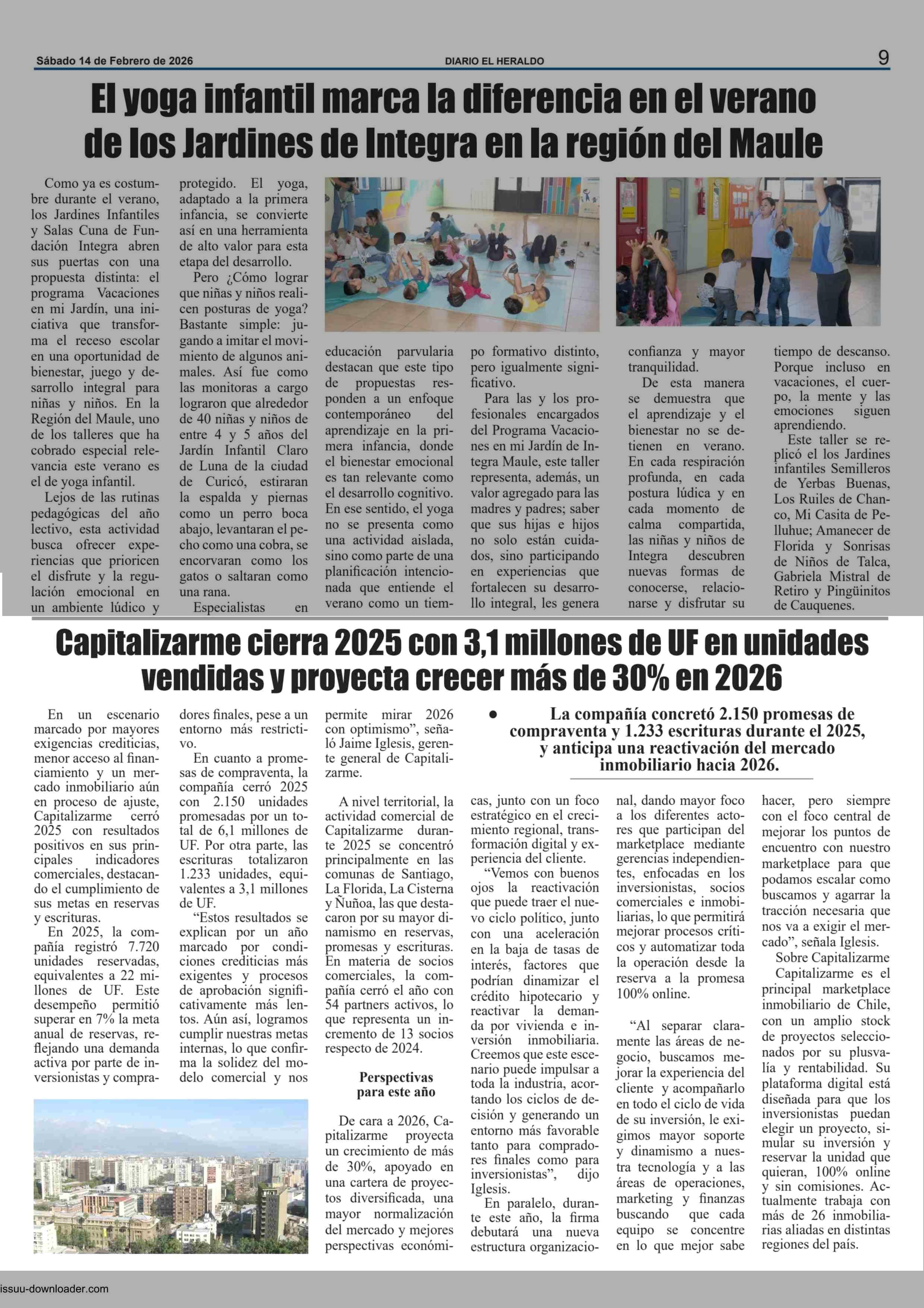 Capitalizarme cierra 2025 con 3,1 millones de UF en unidades vendidas y proyecta crecer más de 30% en 2026 14-02-2026 El Heraldo |