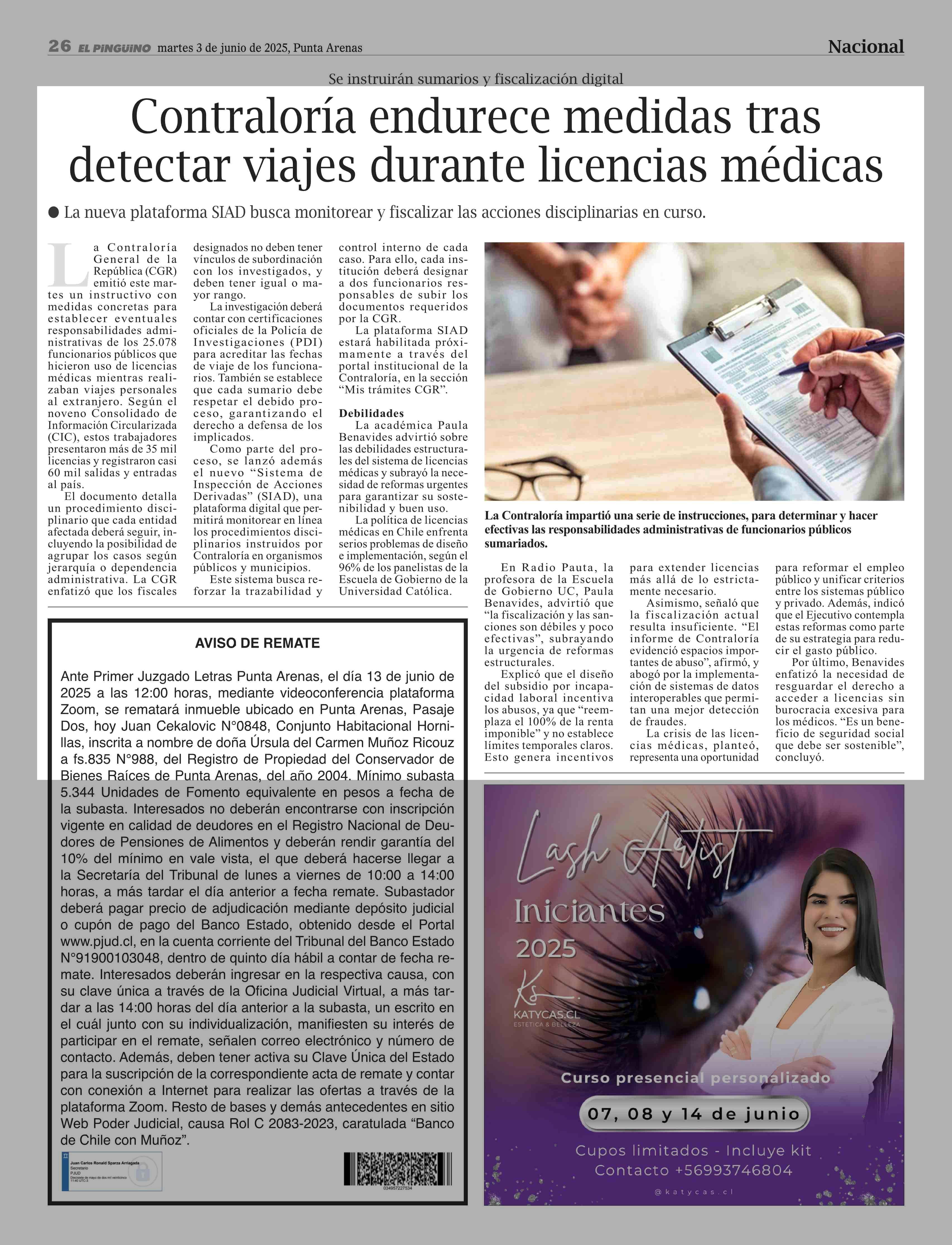 Contraloría endurece medidas tras detectar viajes durante licencias médicas 03-06-2025 El Pingüino |