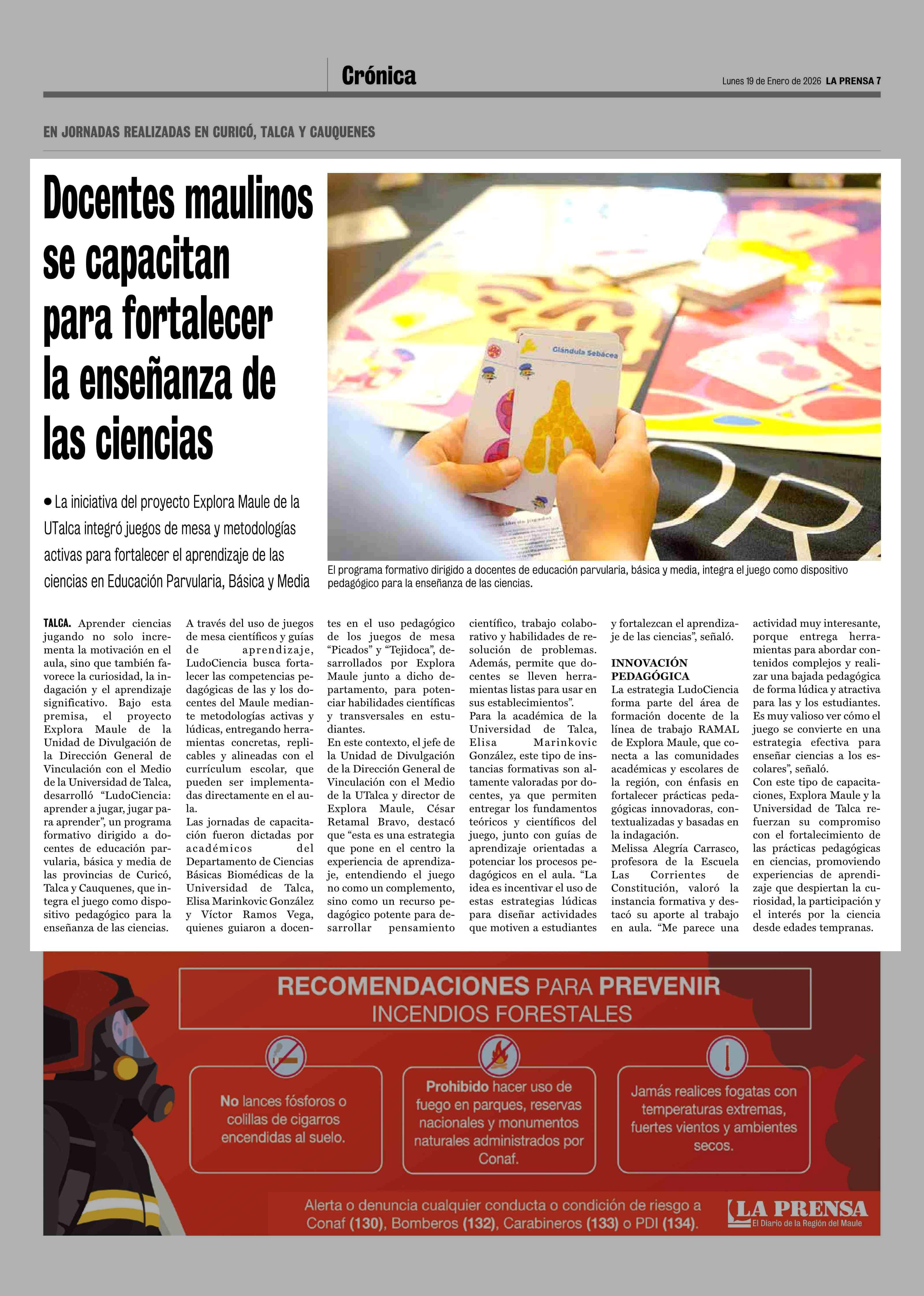 Docentes maulinos se capacitan para fortalecer la enseñanza de las ciencias 19-01-2026 La Prensa de Curicó |