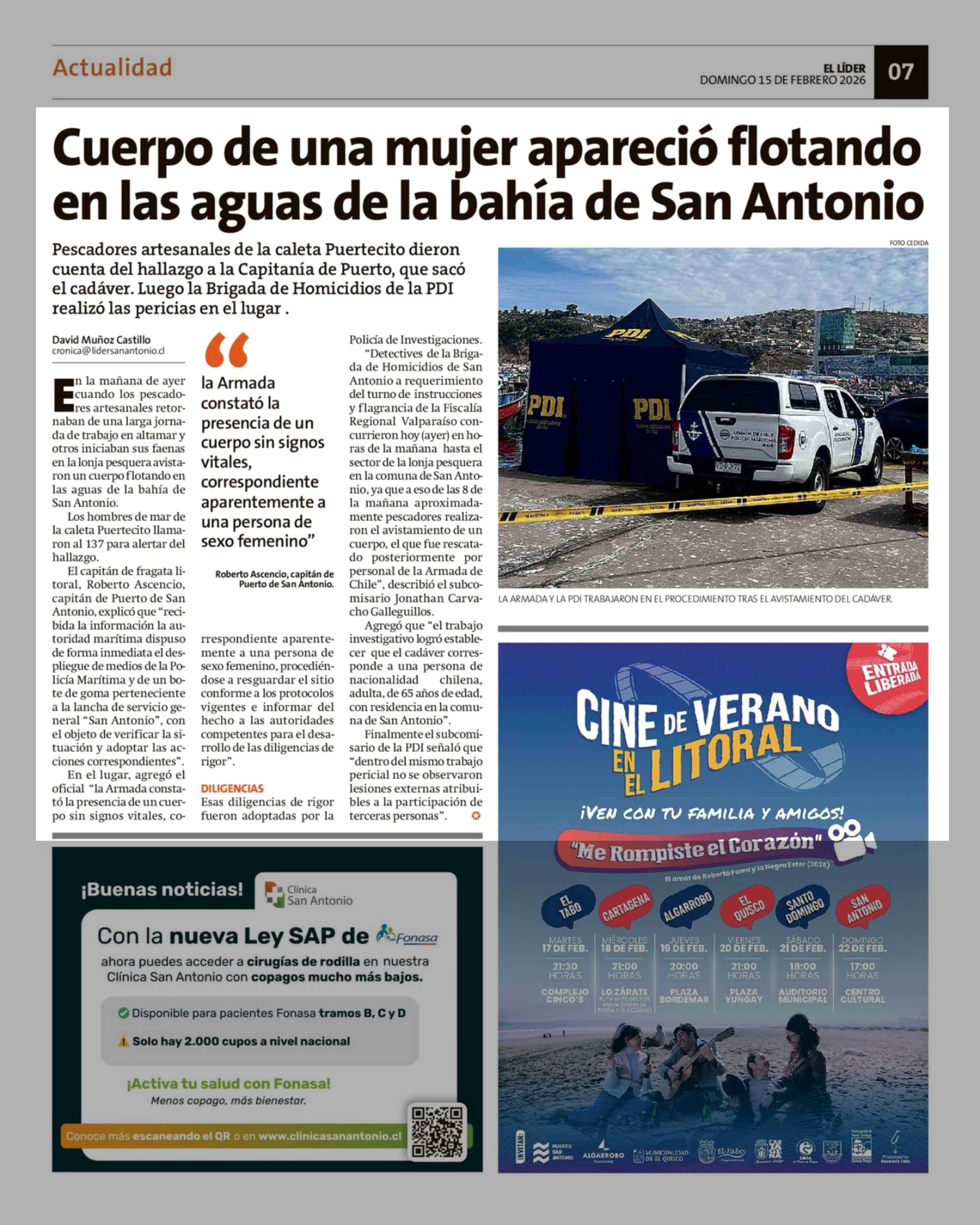 Cuerpo de una mujer apareció flotando en las aguas de la bahía de San Antonio 15-02-2026 El Líder |