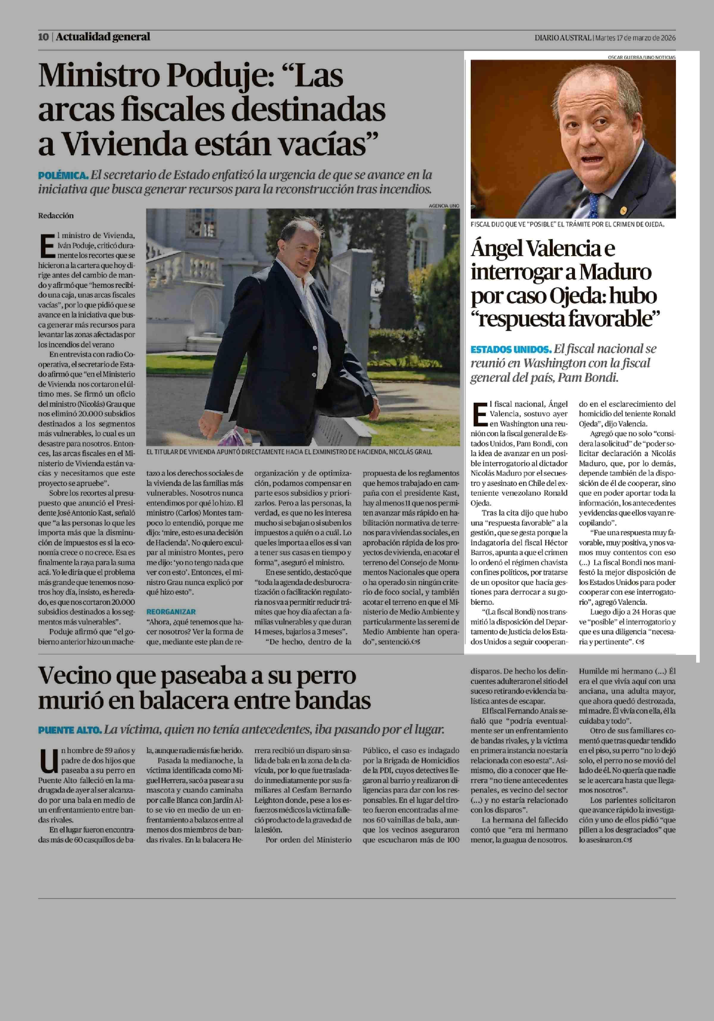 Ángel Valencia e interrogar a Maduro por caso Ojeda: hubo “respuesta favorable” 17-03-2026 Diario Austral Región de Los Ríos |