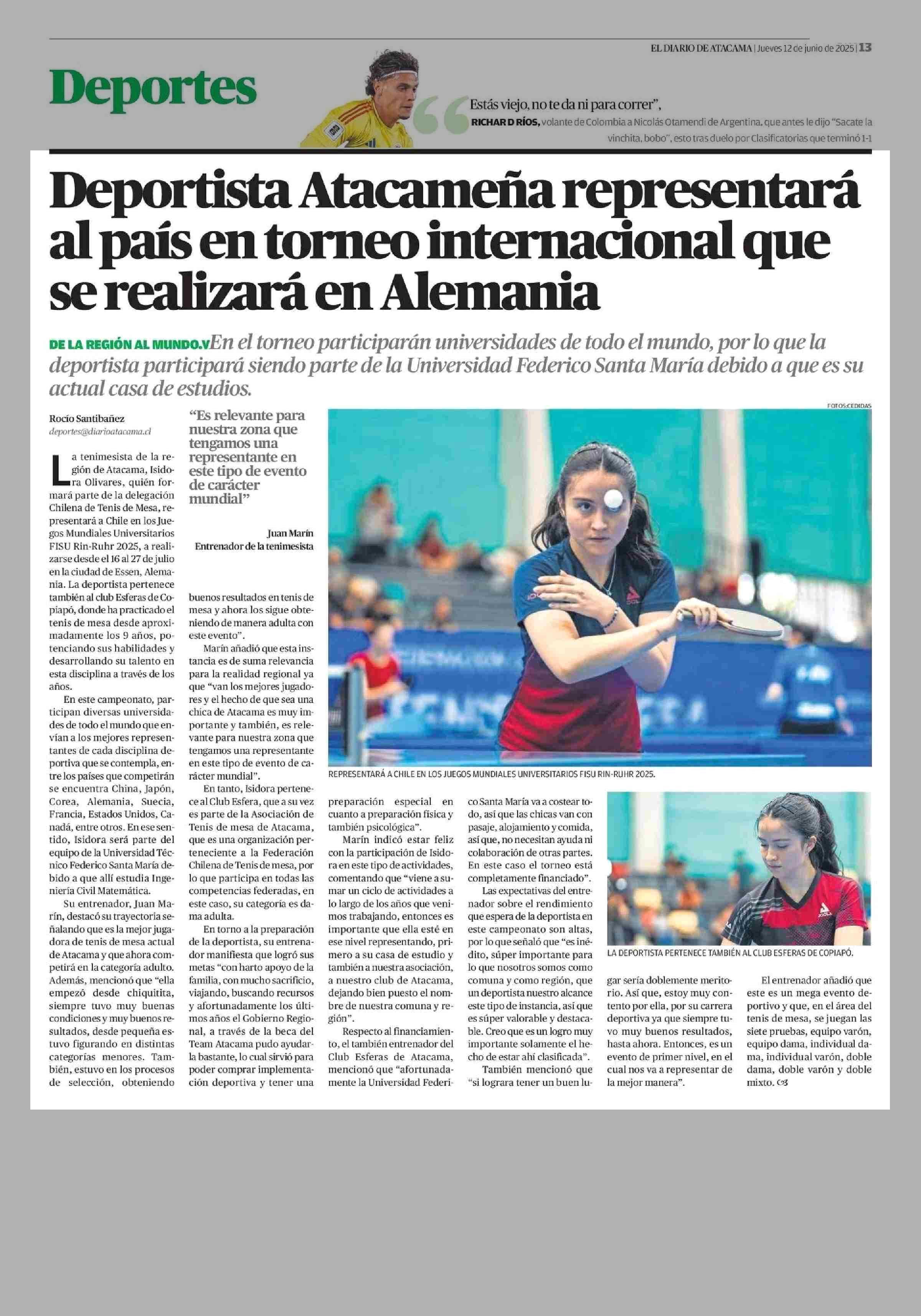 Deportista Atacameña representará al país en torneo internacional que se realizará en Alemania 12-06-2025 El Diario de Atacama |