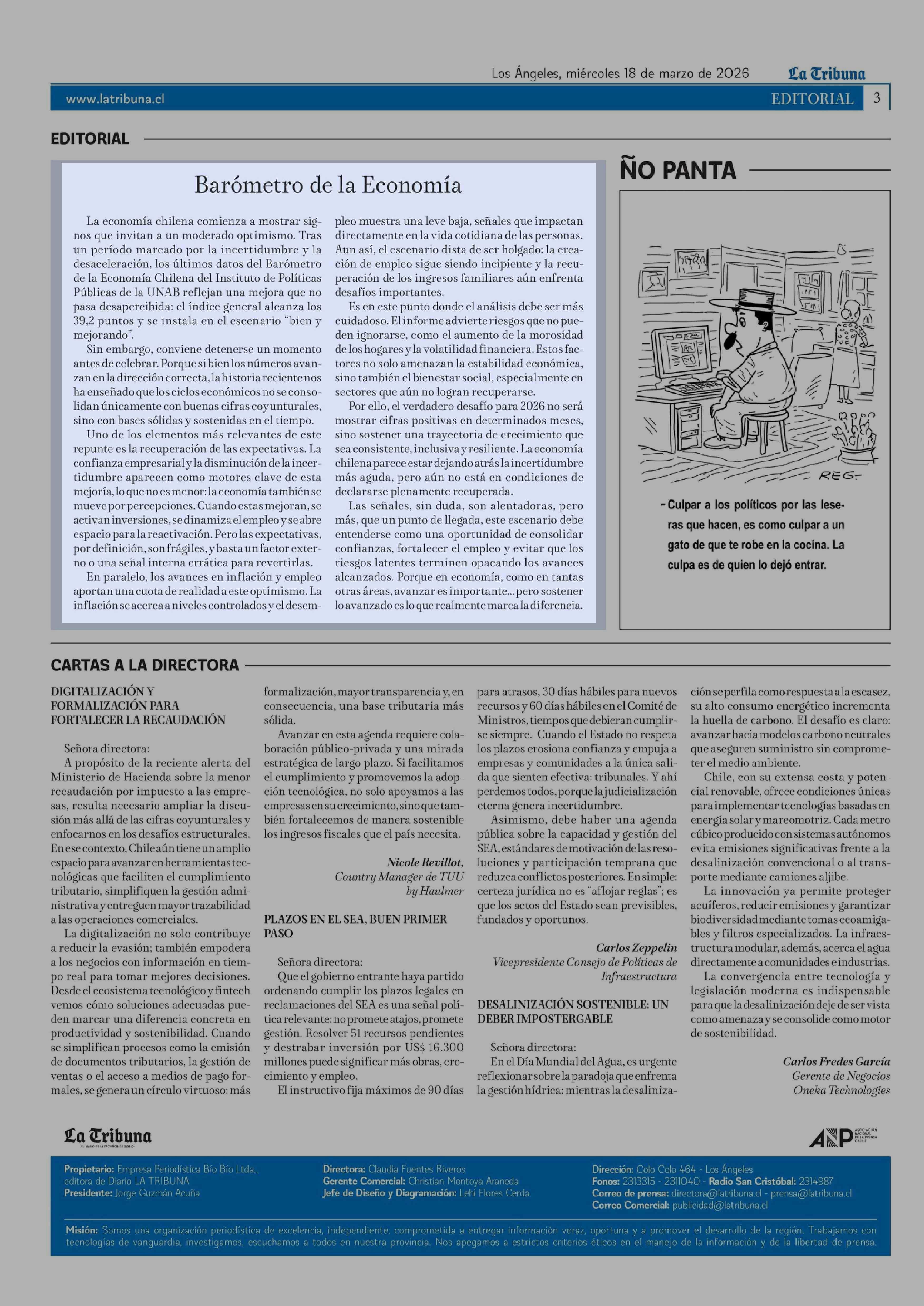 Editorial: Barómetro de la Economía 18-03-2026 La Tribuna |