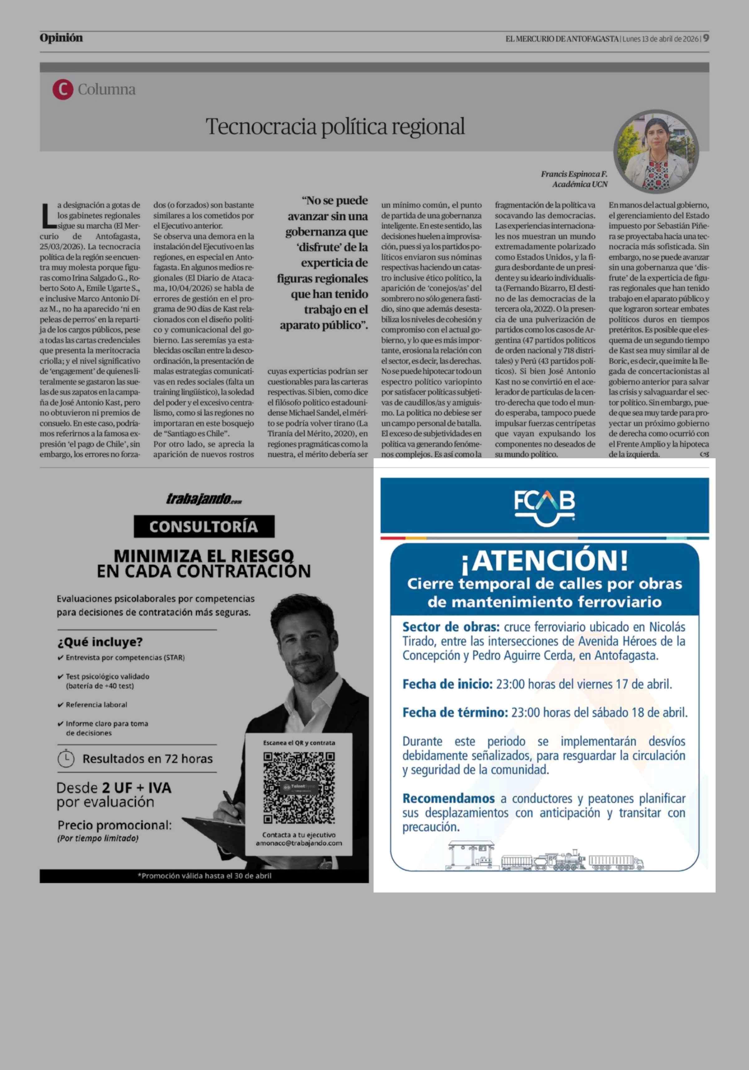 Aviso Publicitario: FCAB 13-04-2026 El Mercurio de Antofagasta |