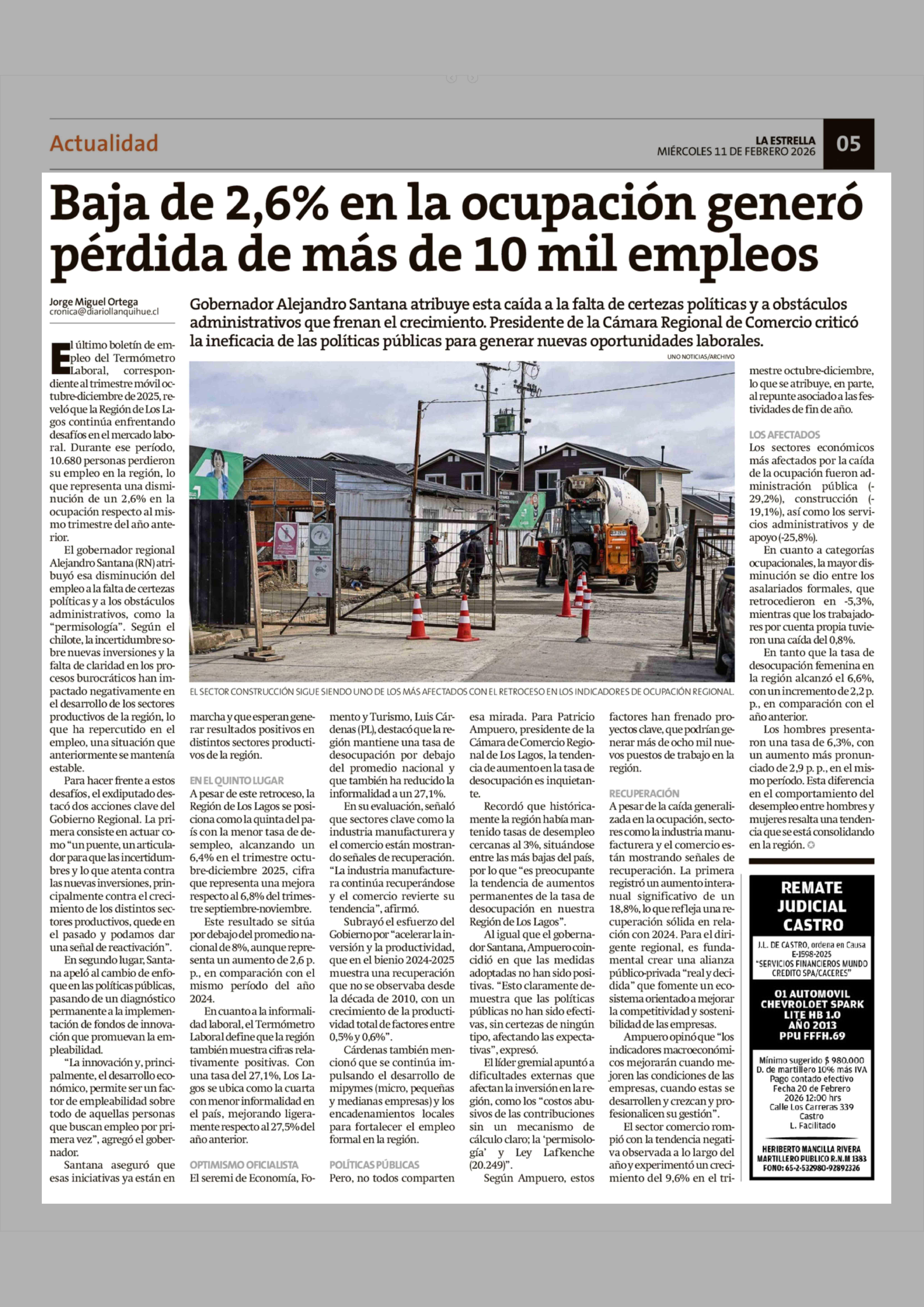 Baja de 2,6% en la ocupación generó pérdida de más de 10 mil empleos 11-02-2026 La Estrella de Chiloé |