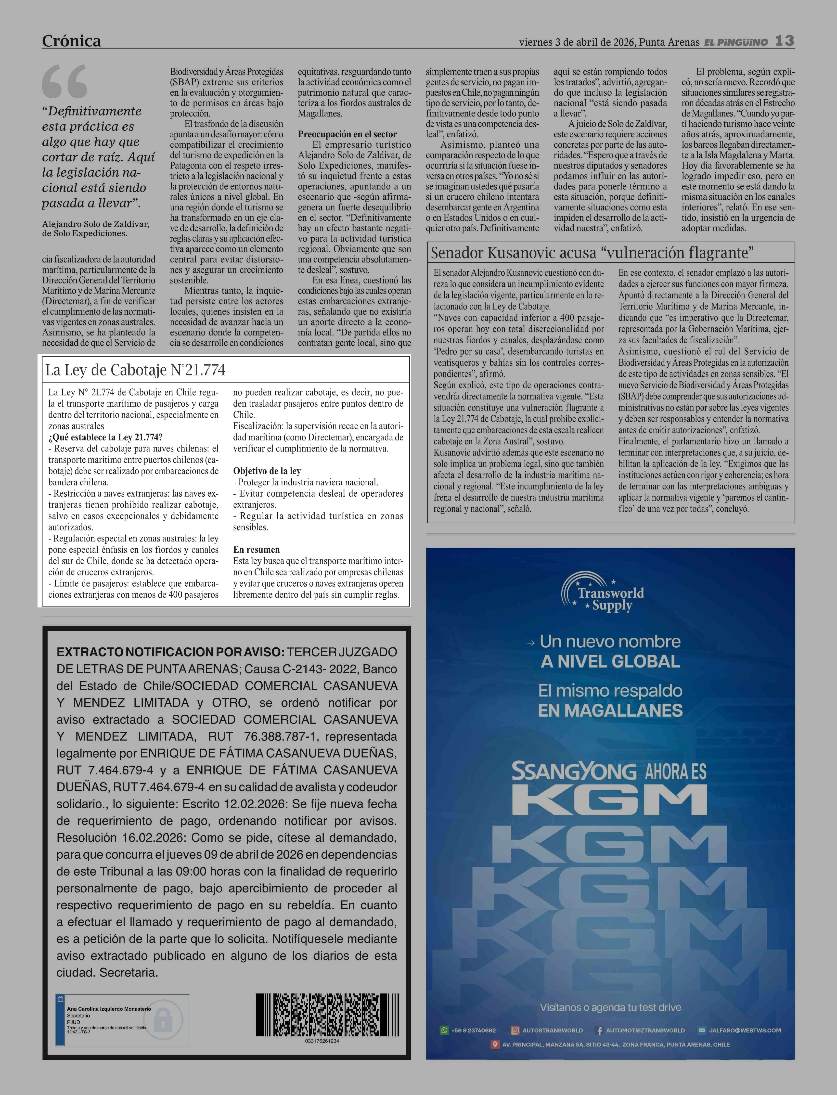 Fecha: 03-04-2026 Sector: Noticia general Región: Región de Magallanes y de la Antártica Chilena