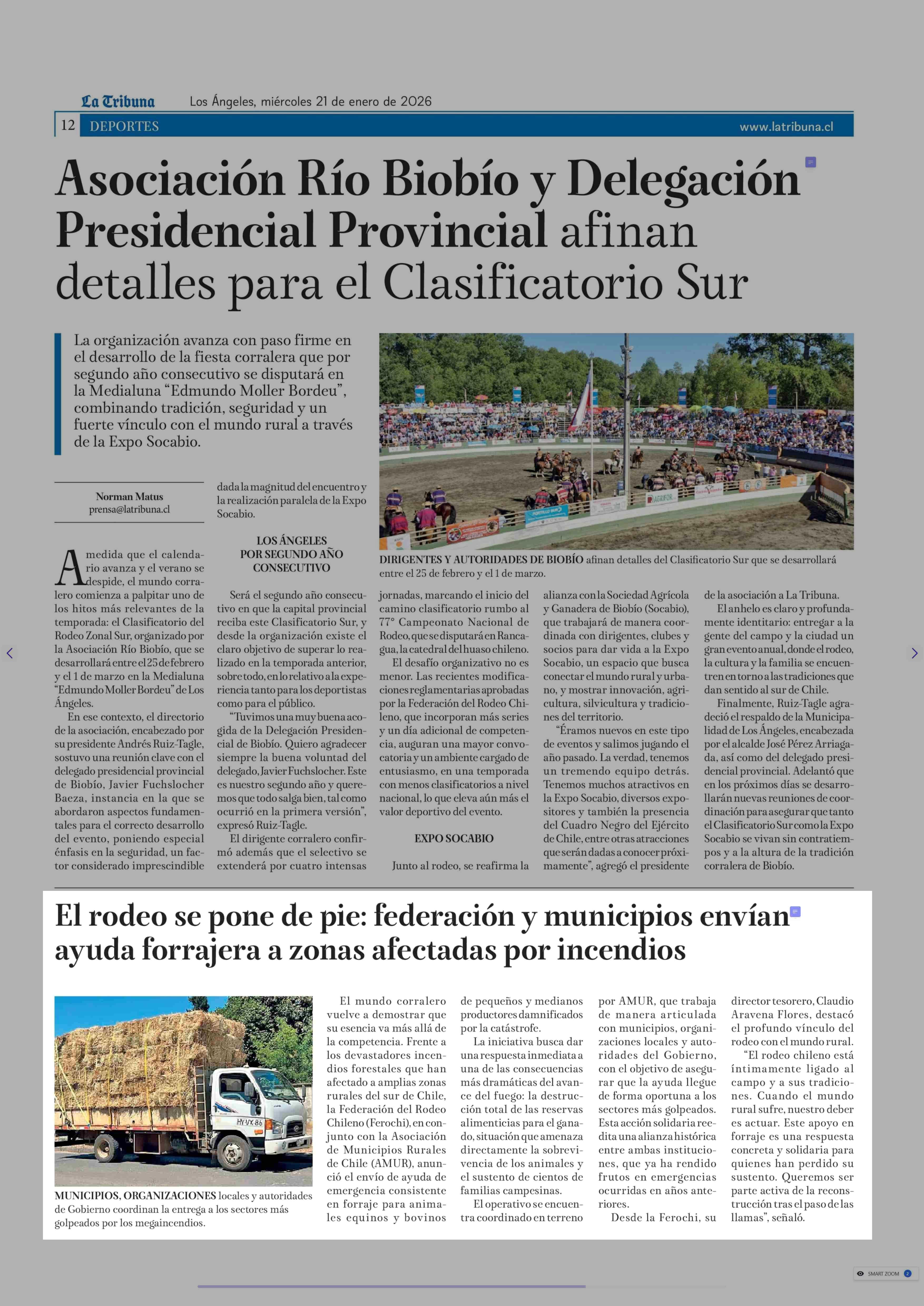 Título: El rodeo se pone de pie: federación y municipios envían ayuda forrajera a zonas afectadas por incendios