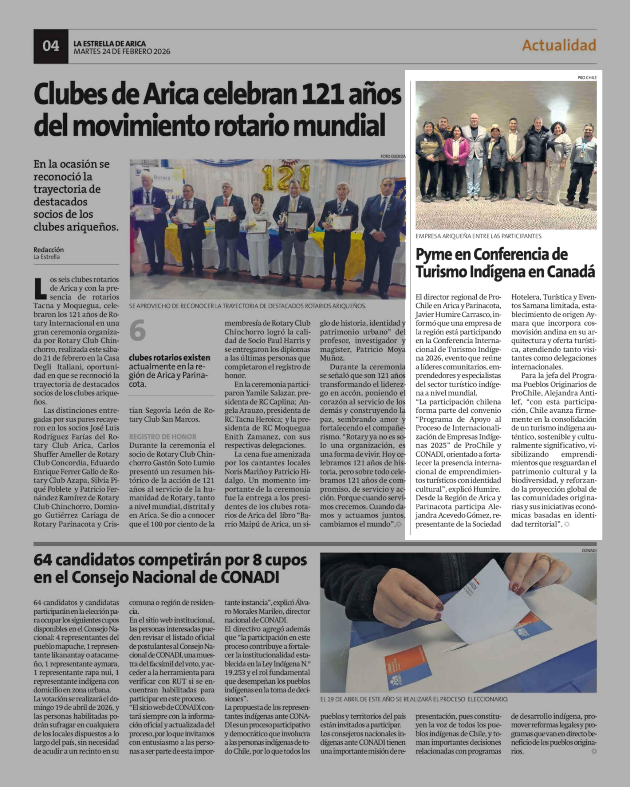 Pyme en Conferencia de Turismo Indígena en Canadá 24-02-2026 La Estrella de Arica |