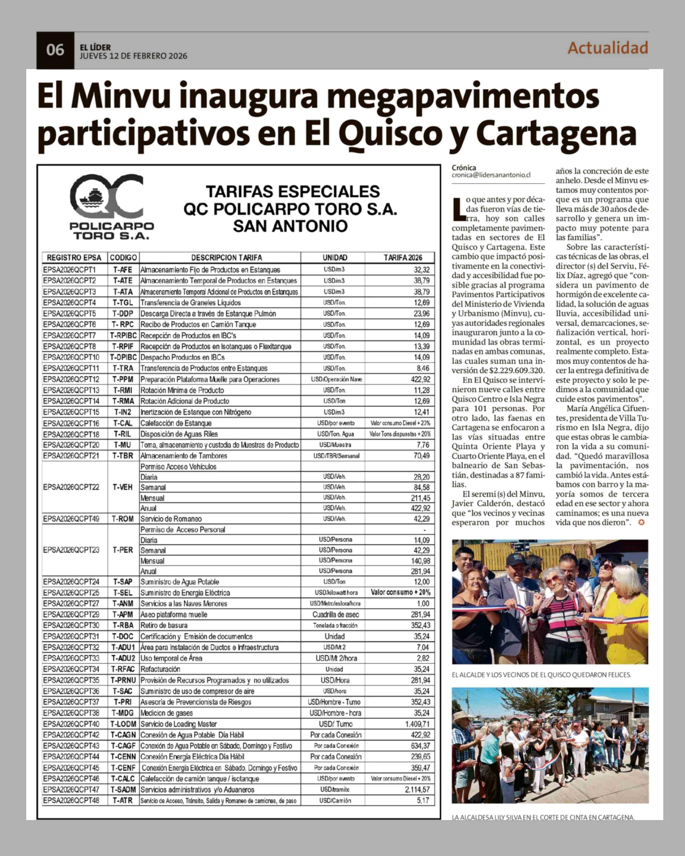 Título: El Minvu inaugura megapavimentos participativos en El Quisco y Cartagena