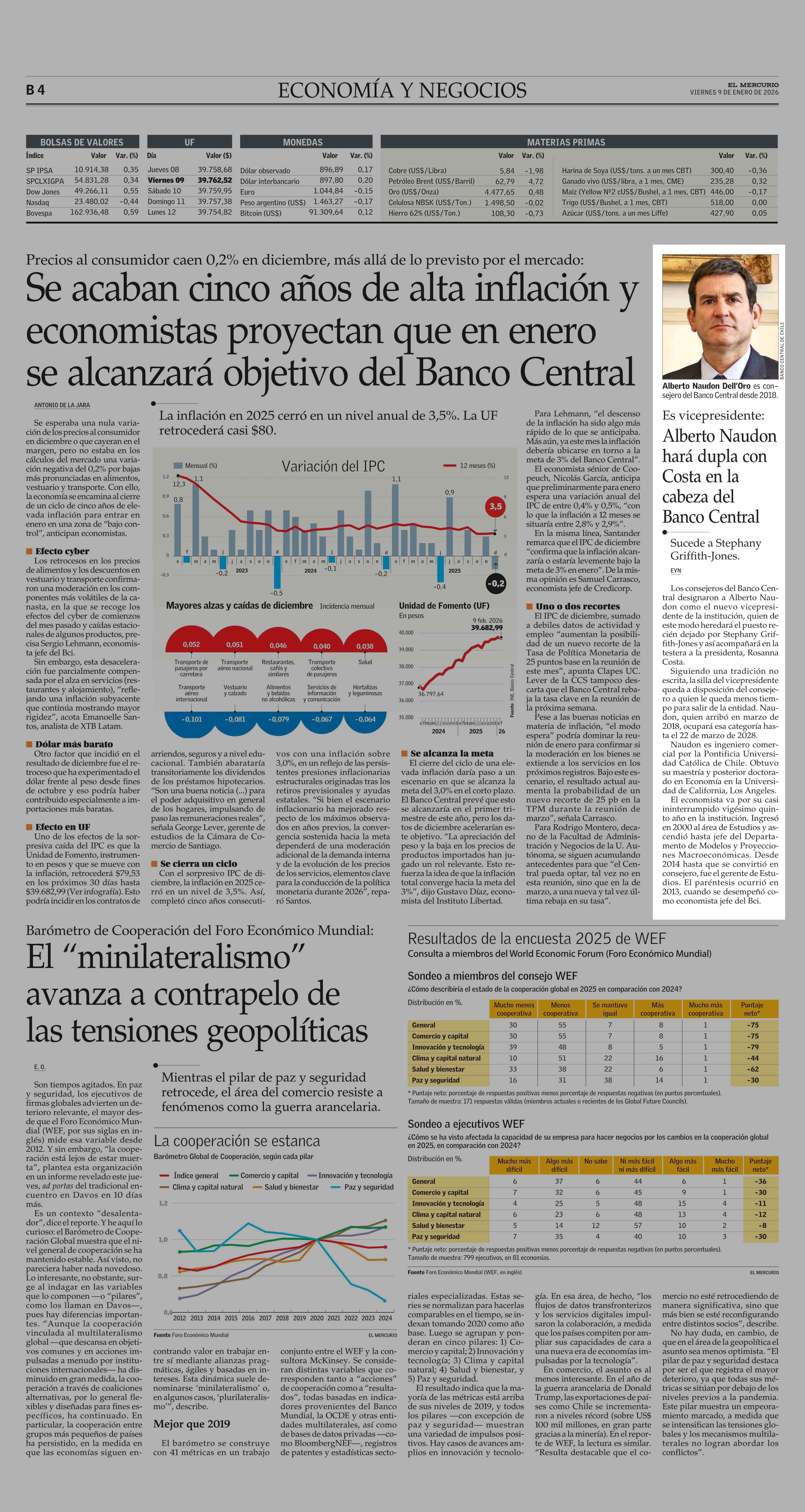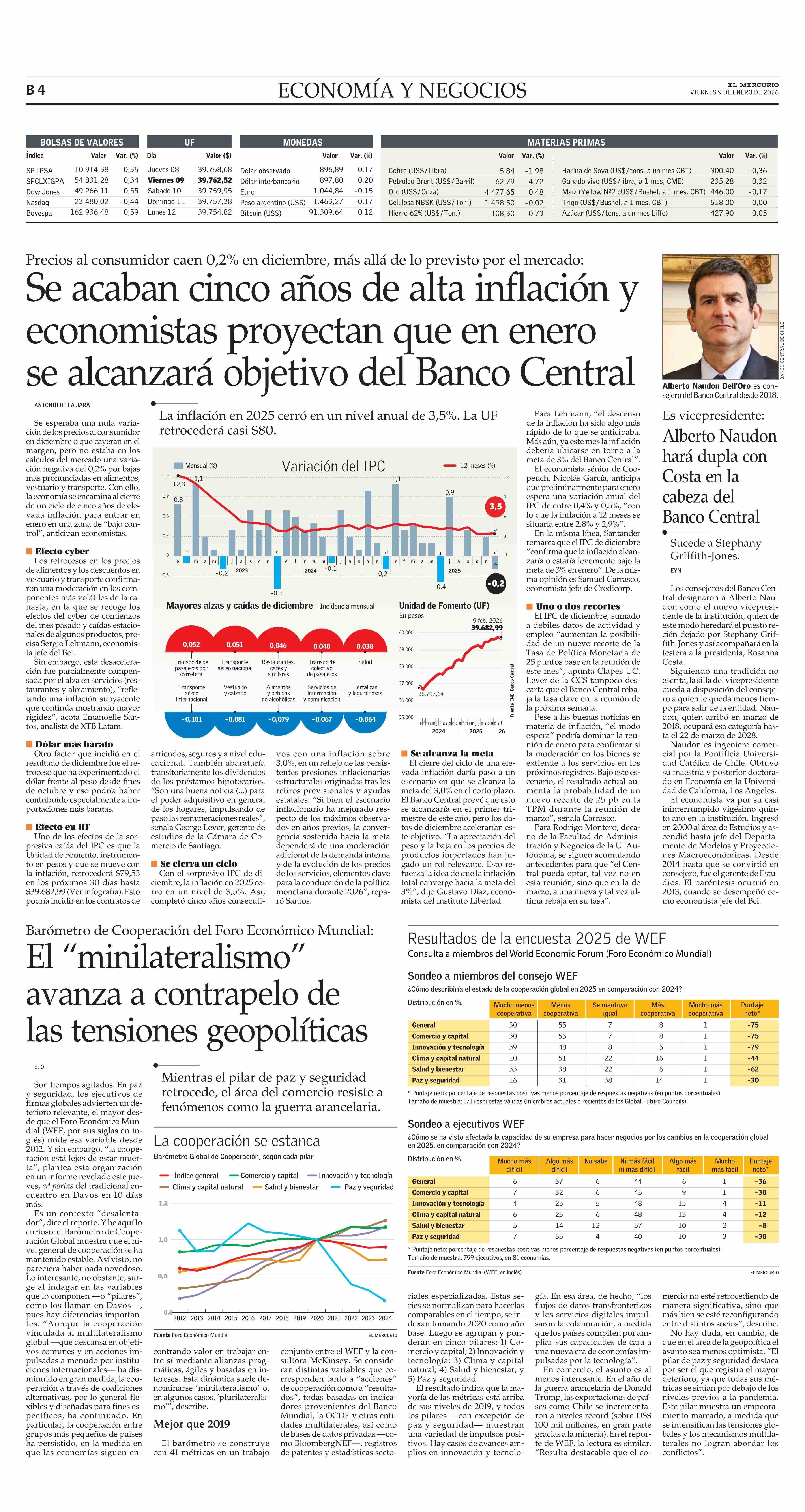 Alberto Naudon hará dupla con Costa en la cabeza del Banco Central 09-01-2026 El Mercurio |