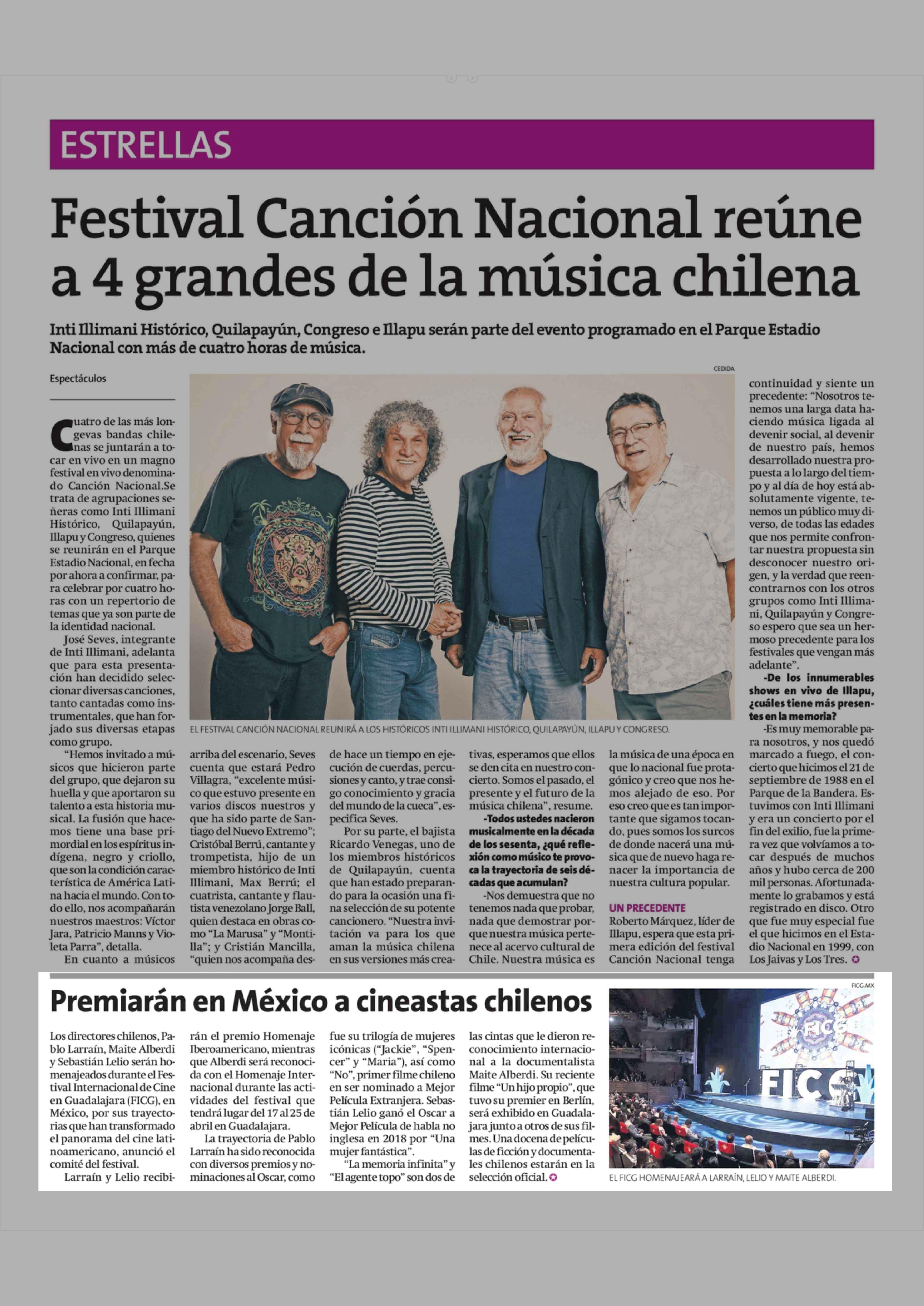 Premiarán en México a cineastas chilenos 03-04-2026 La Estrella de Concepción |