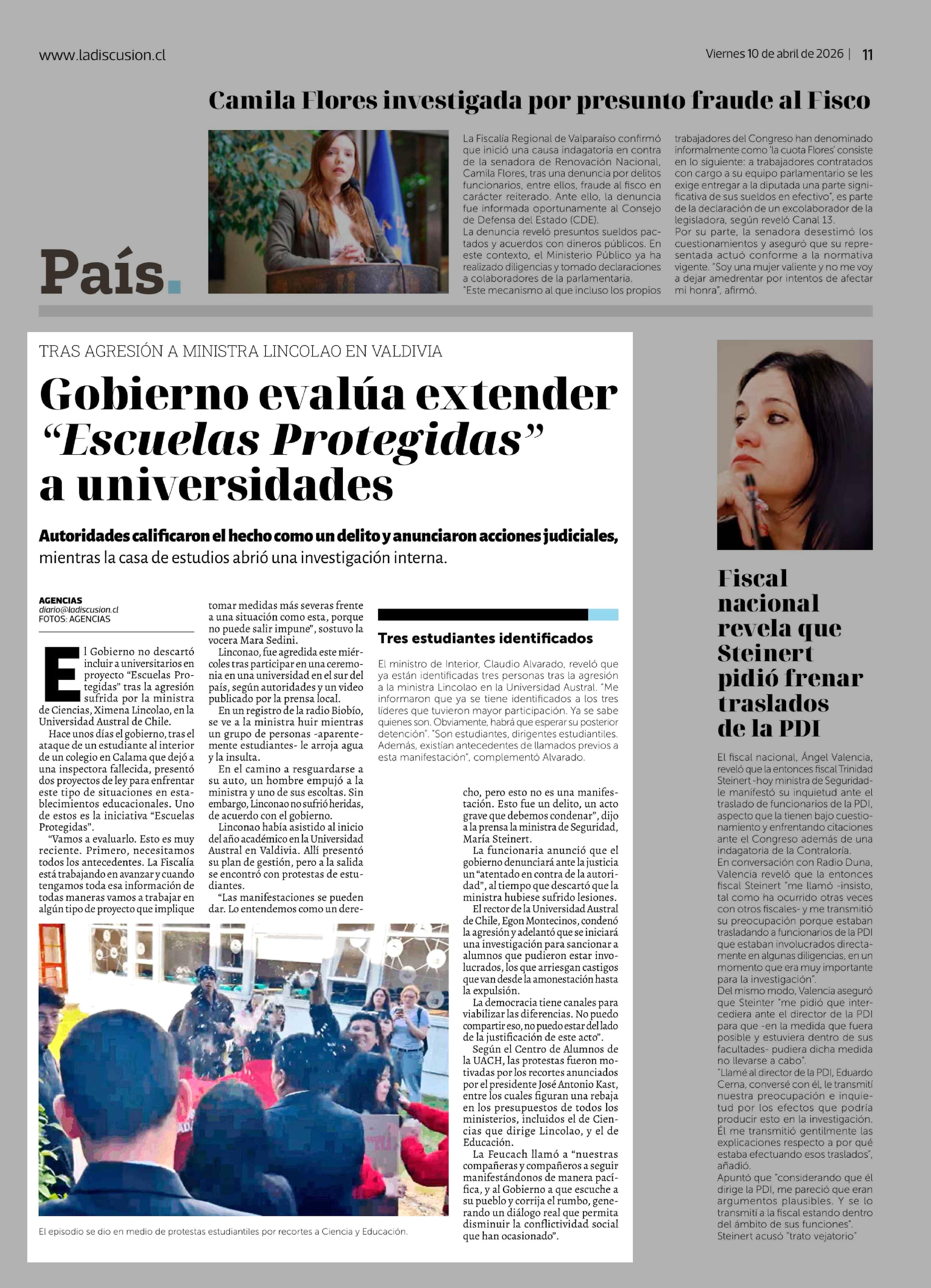 Gobierno evalúa extender "Escuelas Protegidas" a universidades 10-04-2026 La Discusión |
