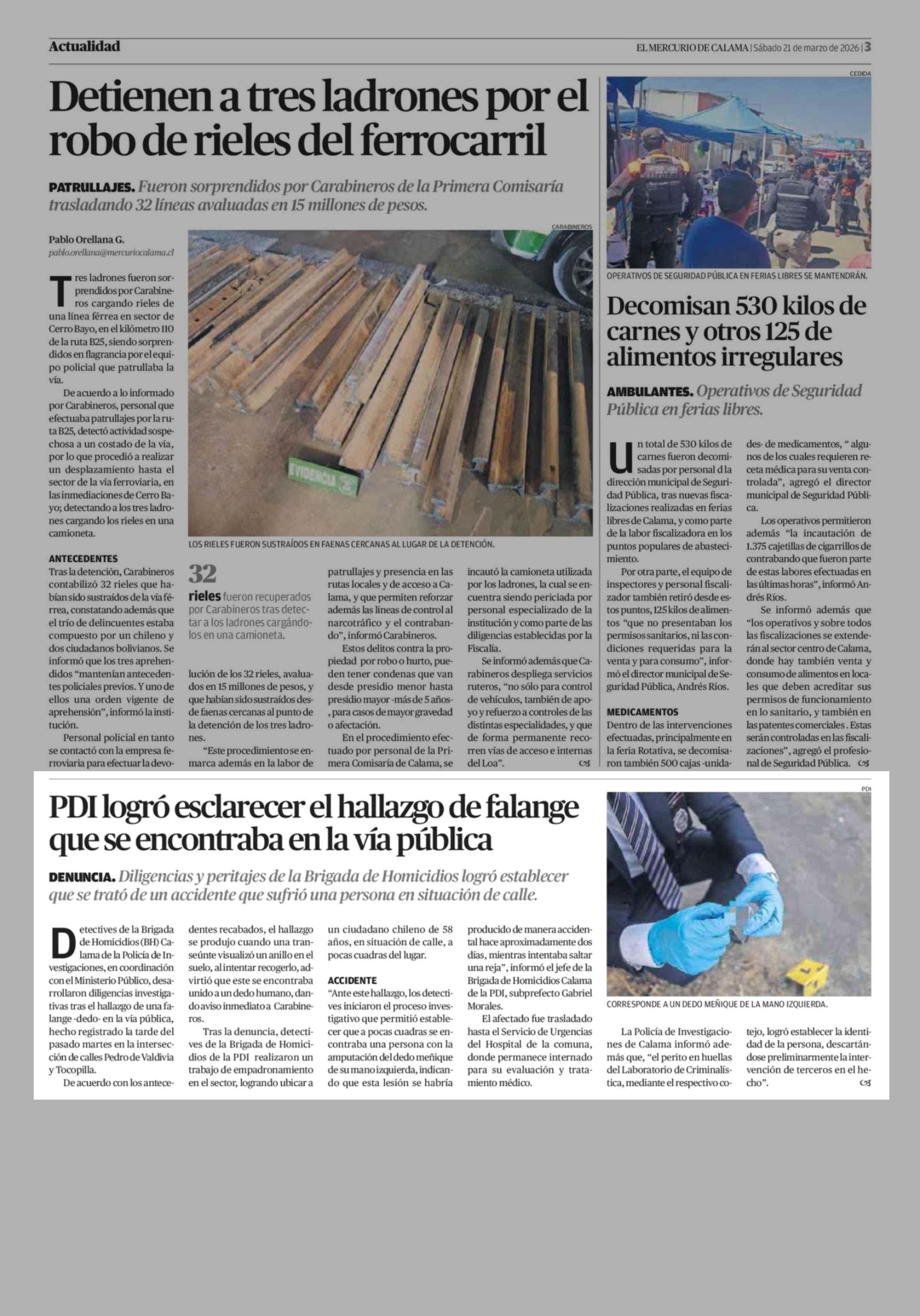 PDI logró esclarecer el hallazgo de falange que se encontraba en la vía pública 21-03-2026 El Mercurio de Calama |