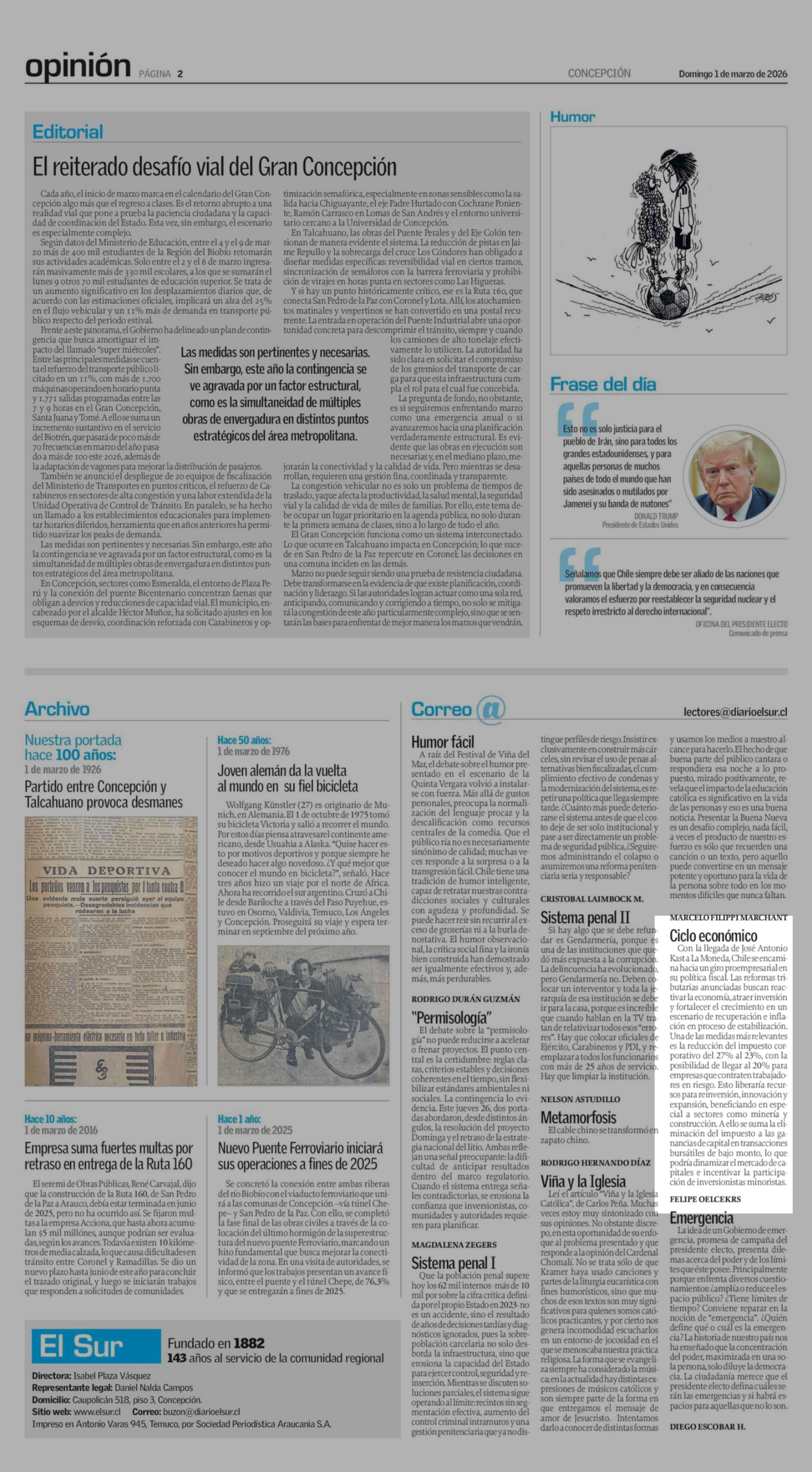 Cartas: Ciclo económico 01-03-2026 El Sur |