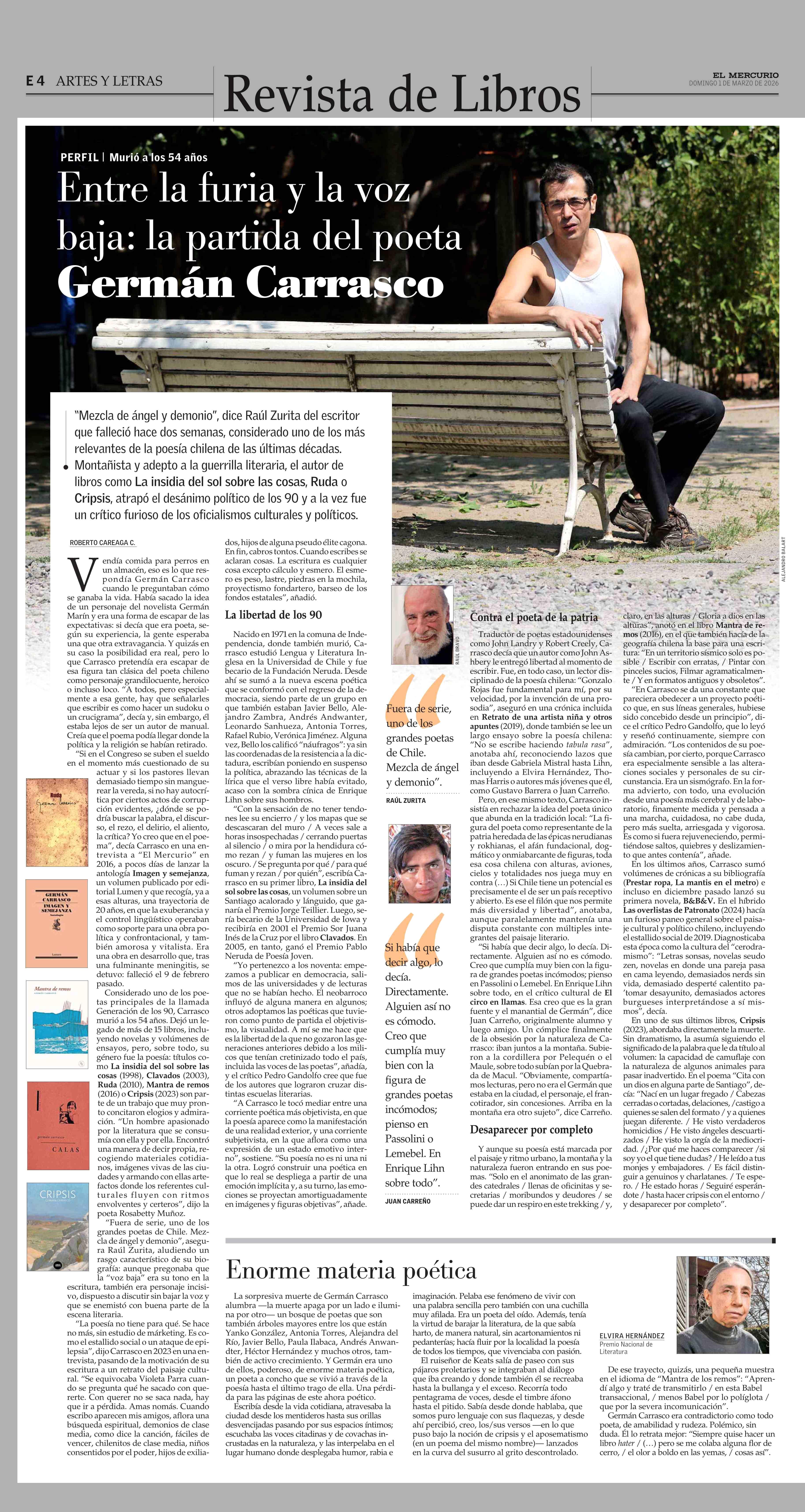 Entre la furia y la voz baja: la partida del poeta Germán Carrasco 01-03-2026 El Mercurio |