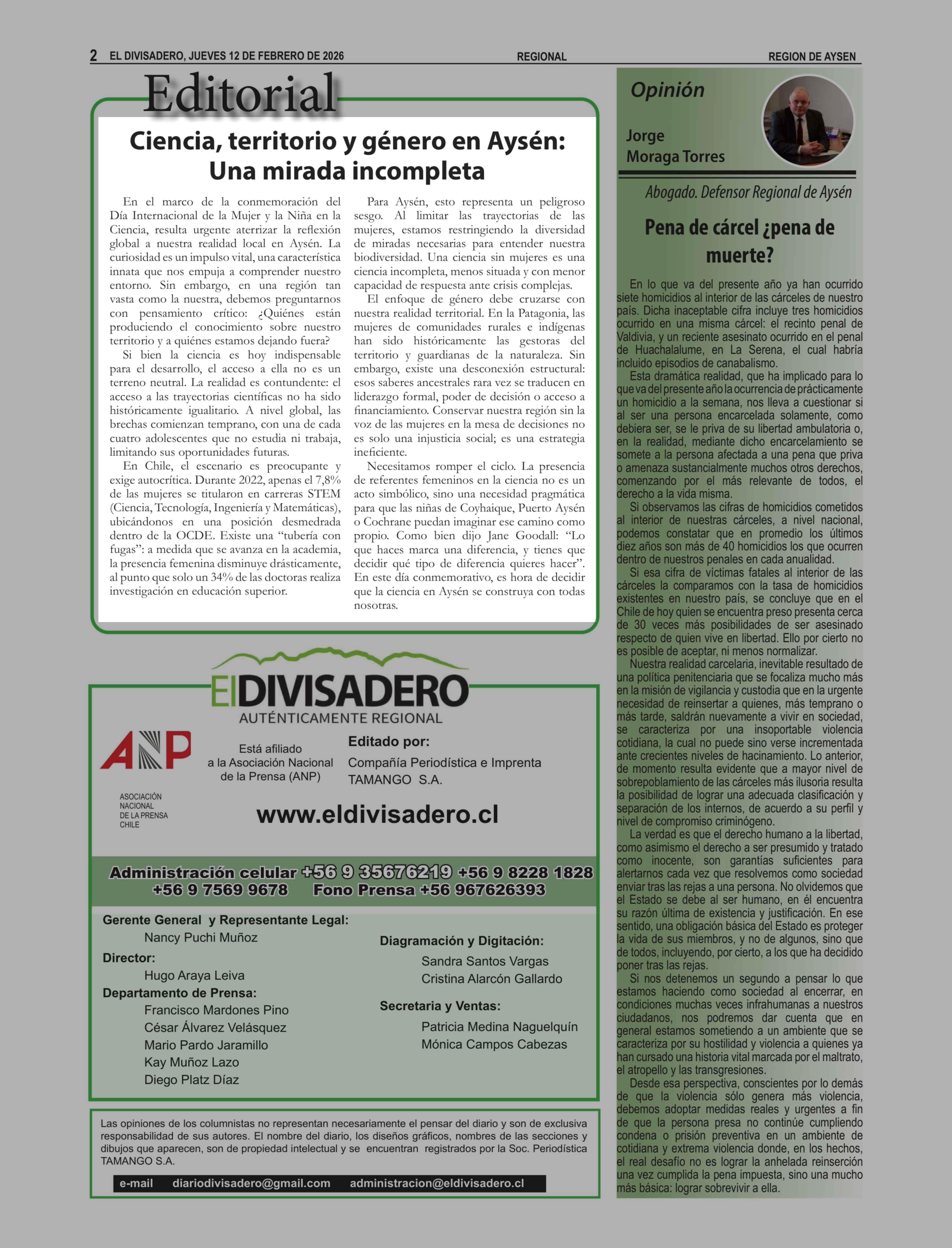 | Fecha: | 12-02-2026 | Sector: | Editorial | Región: | Región Aysén del General Carlos Ibáñez del Campo |