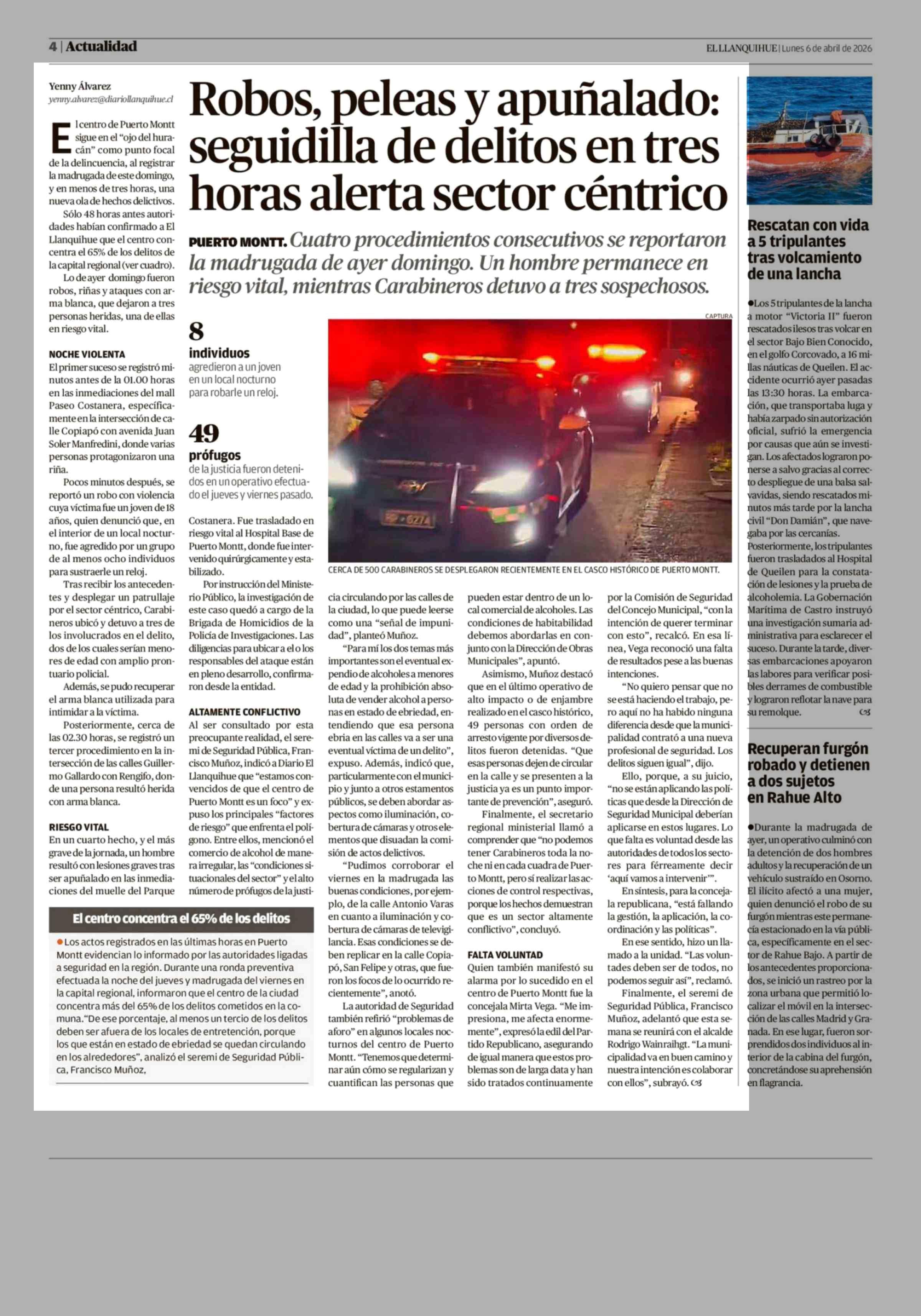 Robos, peleas y apuñalado: seguidilla de delitos en tres horas alerta sector céntrico 06-04-2026 El Llanquihue |