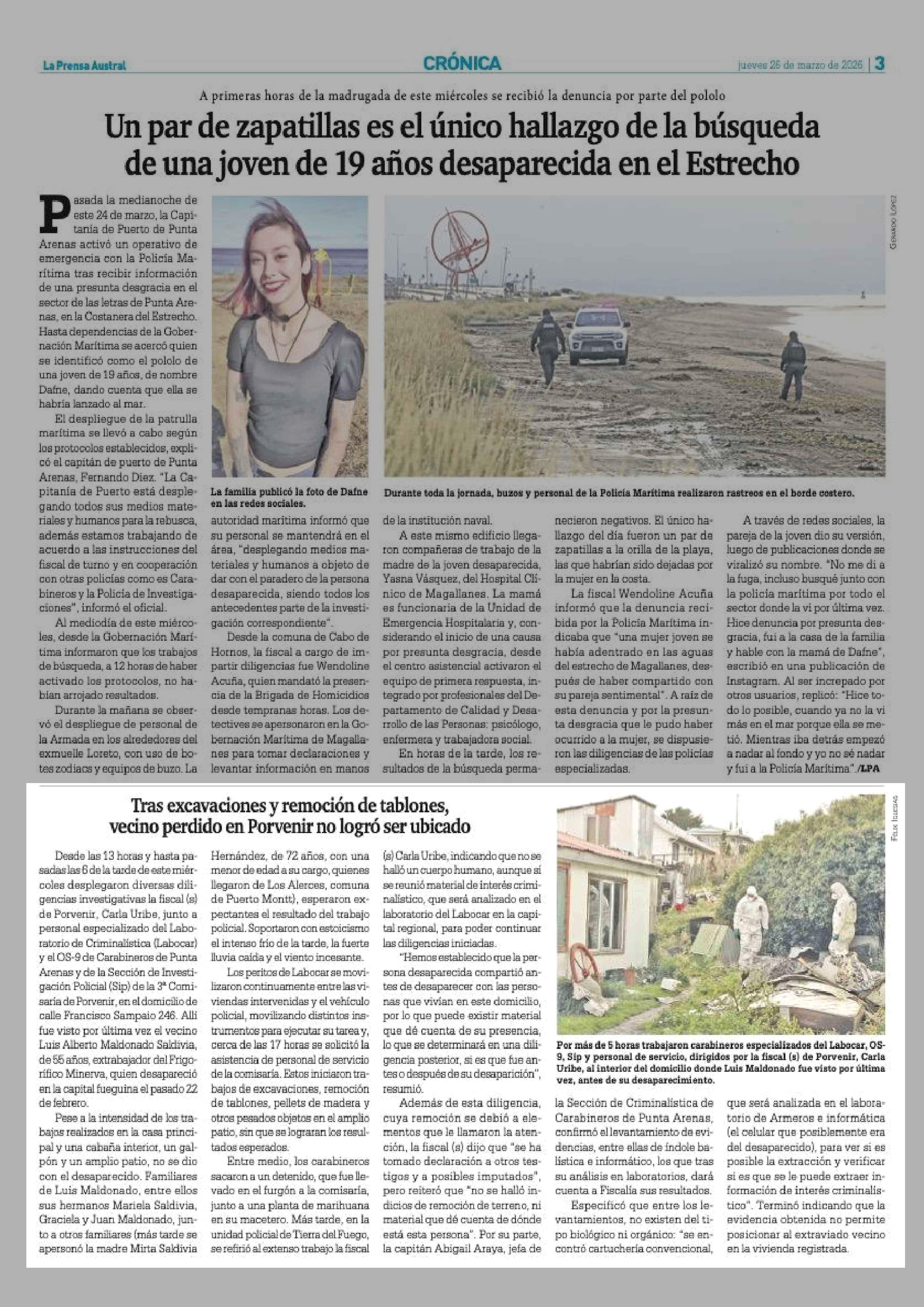 | Fecha: | 26-03-2026 | Sector: | Noticia general | Región: | Región de Magallanes y de la Antártica Chilena |