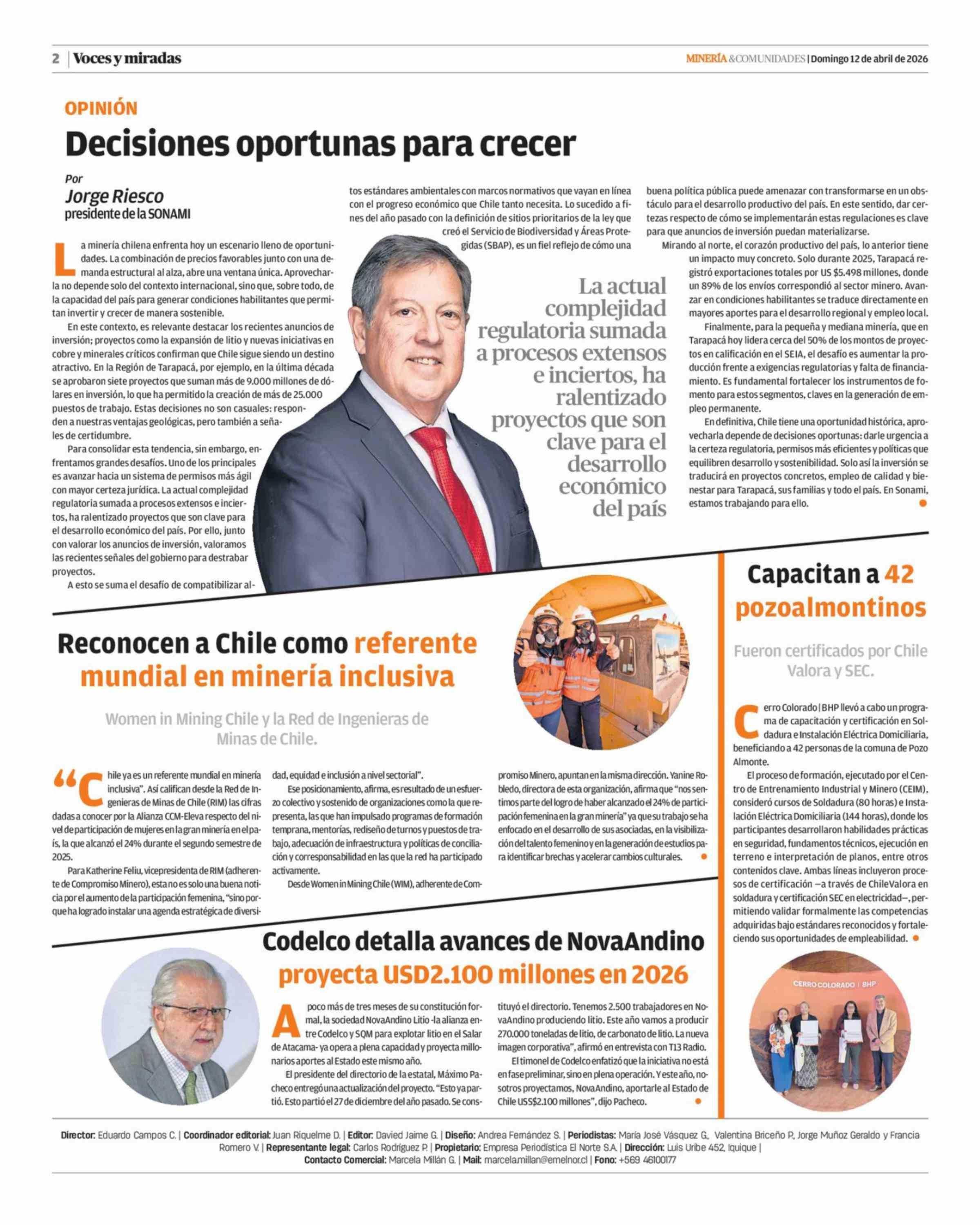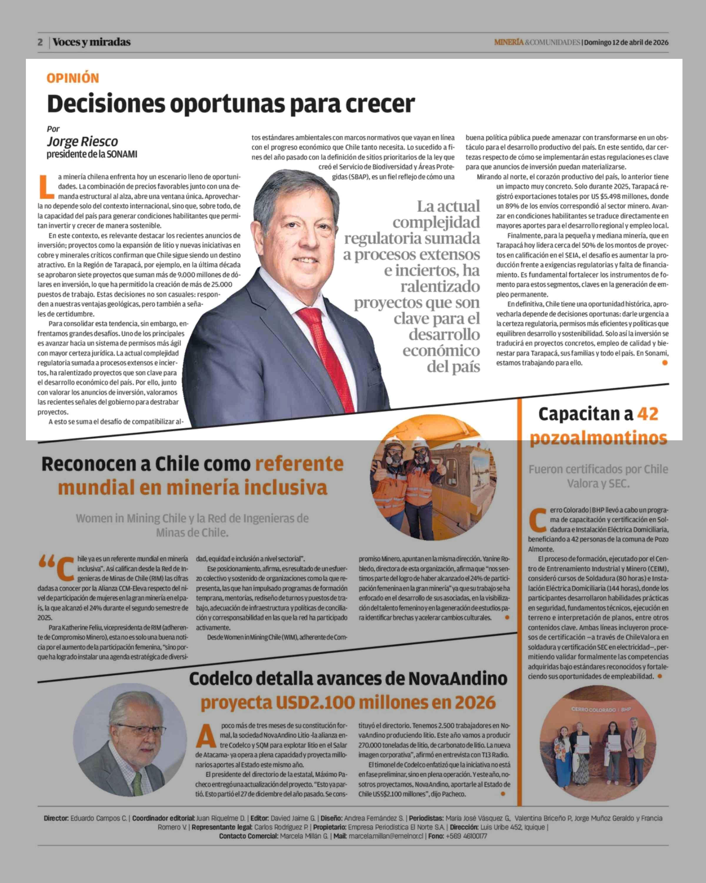 Columnas de Opinión: Decisiones oportunas para crecer 12-04-2026 La Estrella de Iquique |