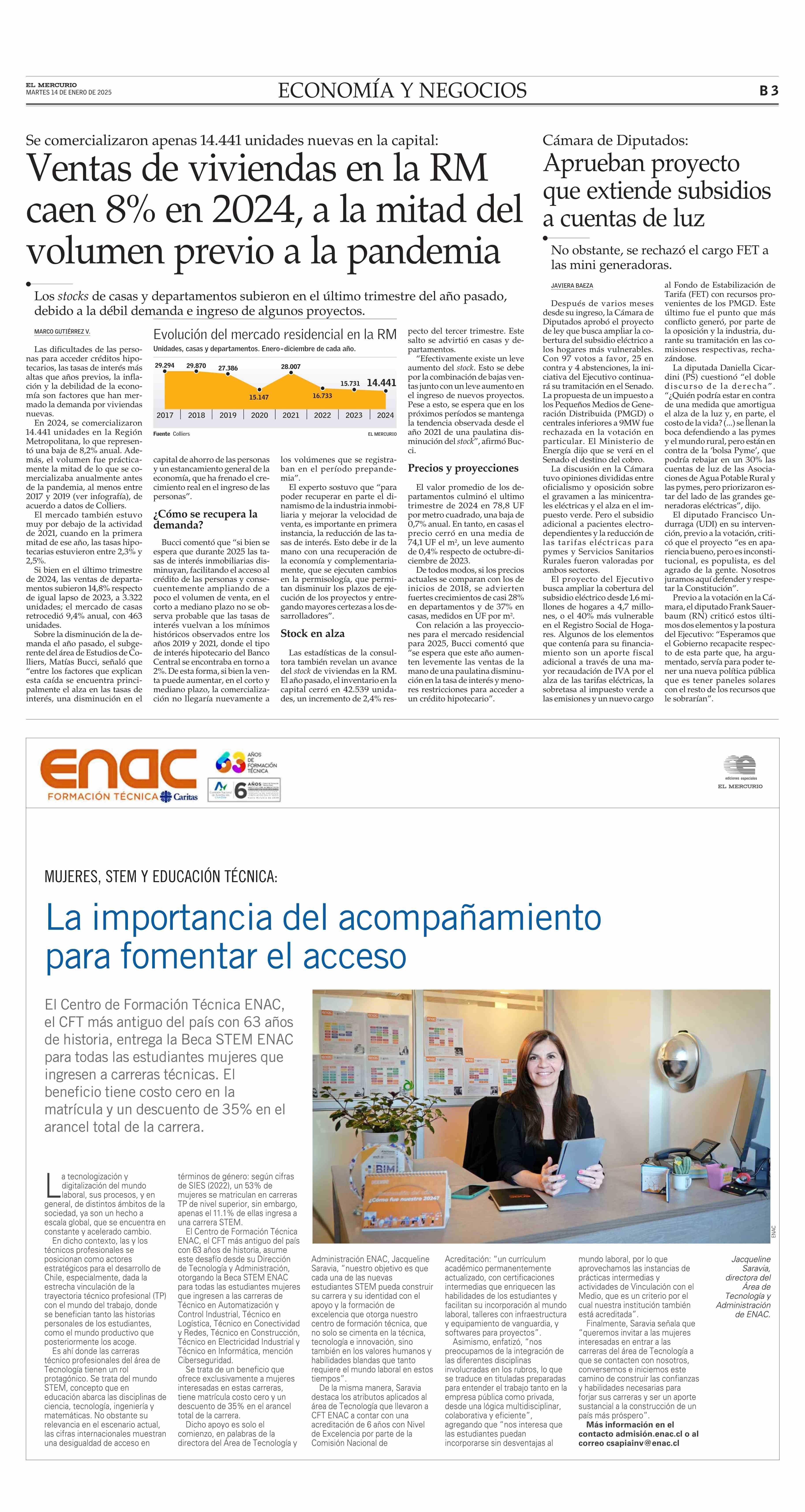 Aprueban proyecto que extiende subsidios a cuentas de luz 14-01-2025 El Mercurio |