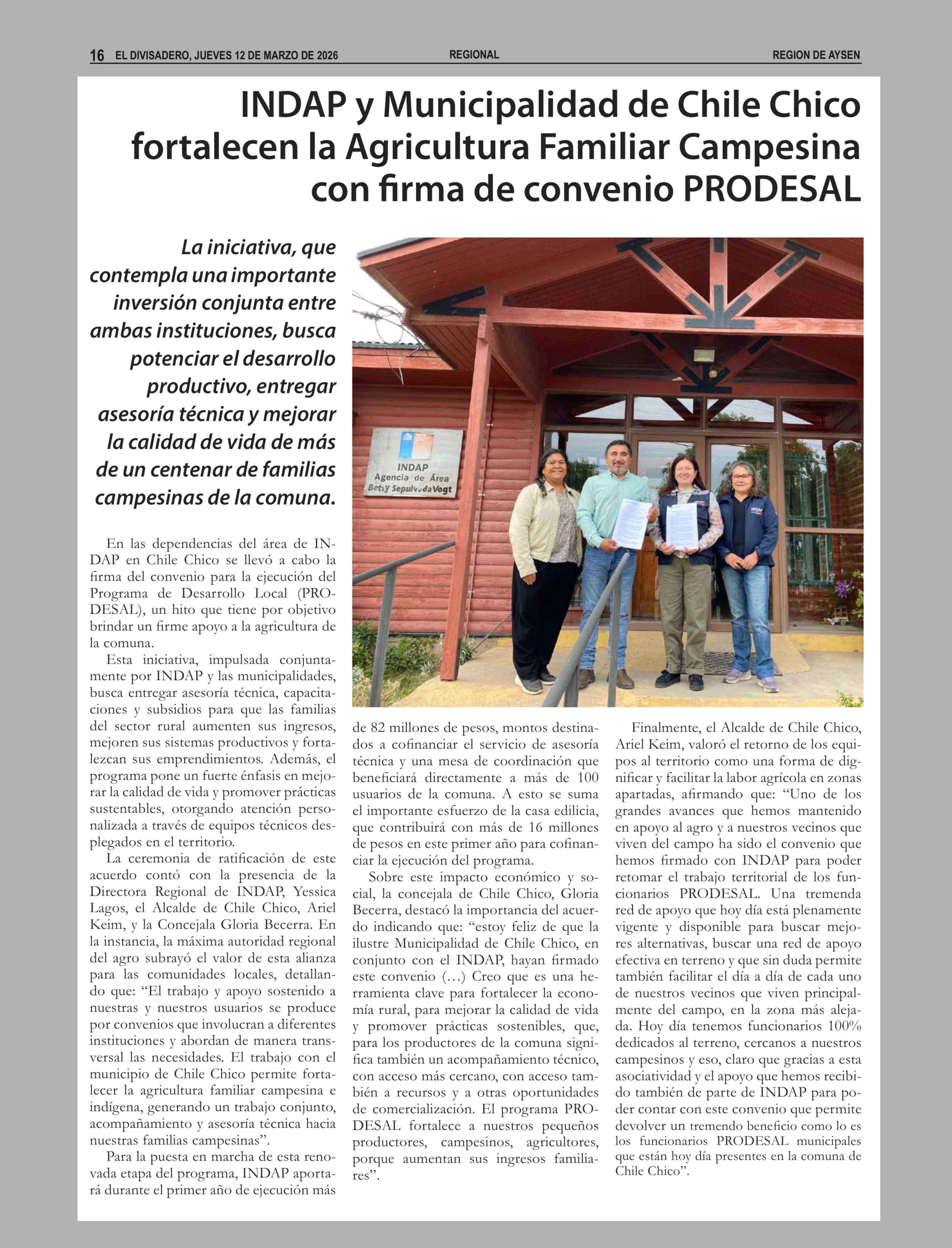 INDAP y Municipalidad de Chile Chico fortalecen la Agricultura Familiar Campesina con firma de convenio PRODESAL 12-03-2026 El Divisadero |