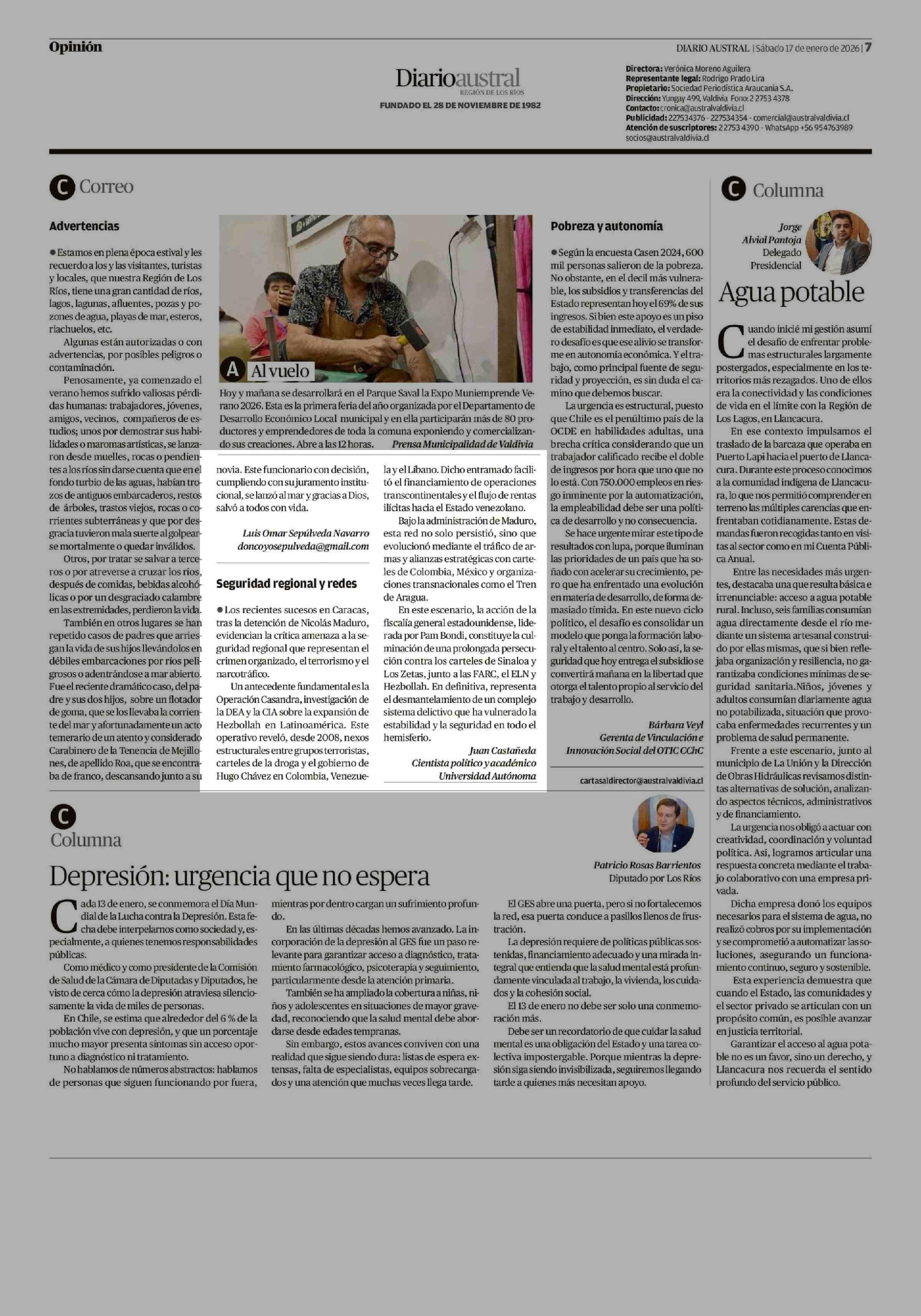 Cartas: Seguridad regional y redes 17-01-2026 Diario Austral Región de Los Ríos |